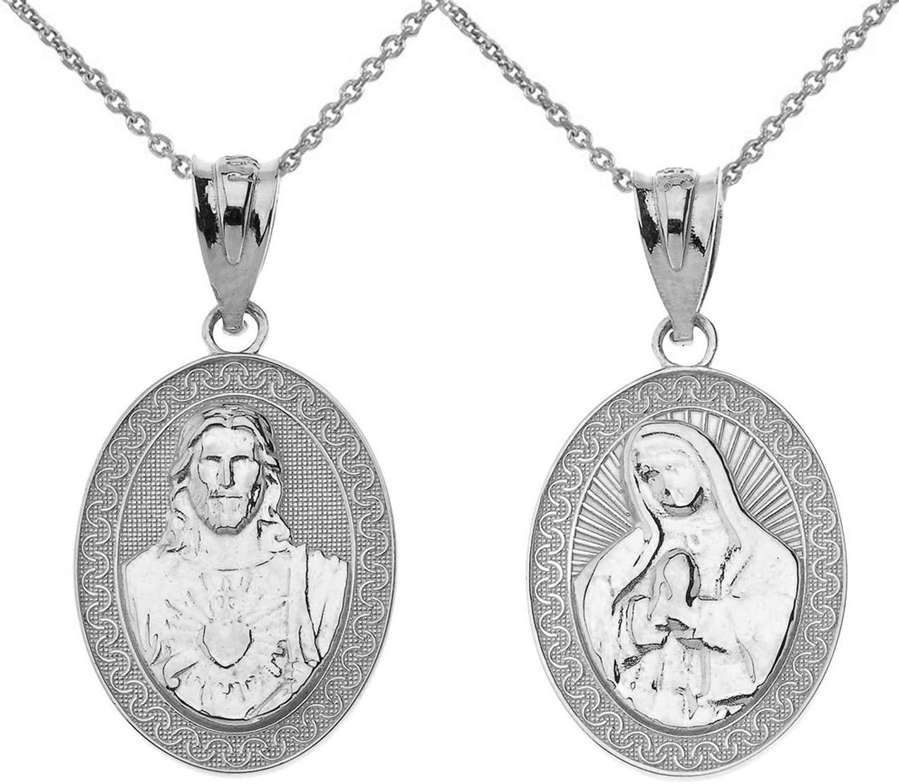 Claddagh Gold .925 Sterling Silver Sacred Heart Of Jesus, Immaculate Heart of Mary Medal Reversible Pendant Necklace