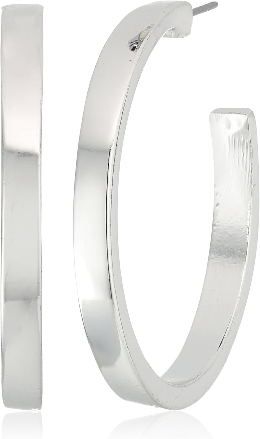 GUESS "Basic" Silver Logo Open Hoop Earrings