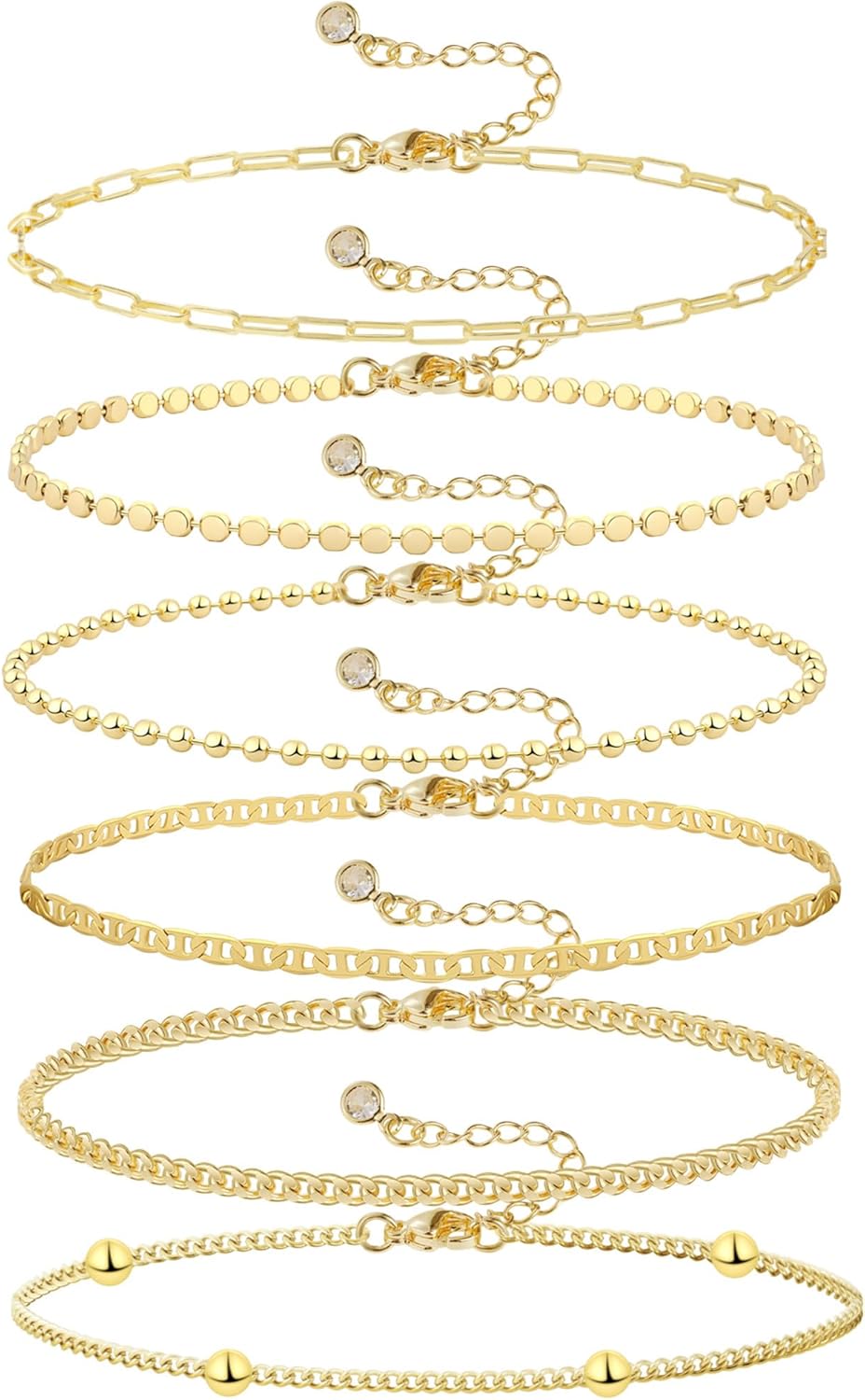 Gold Bracelets Set for Women, 14K Real Gold Plated/Silver Dainty Link Chain Bracelets Ring Hand Chain Charm Stackable Cuban Link Paperclip Bracelet Non Tarnish Jewelry Accessories Gifts