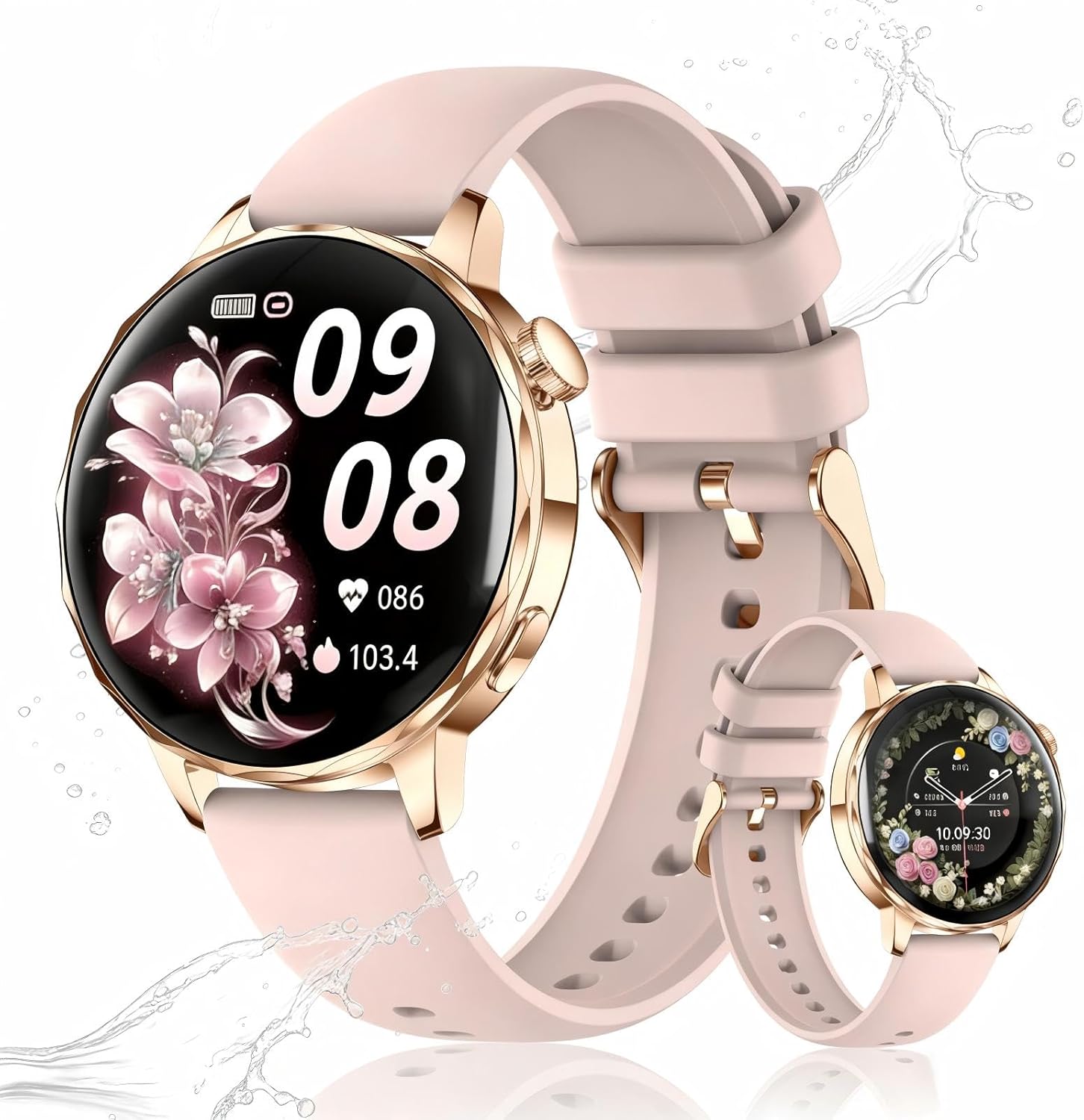 Smart Watch for Women,1.27 Inch HD Touchscreen,Bluetooth Calling,Heart Rate & Sleep Tracking, 100+ Sports Modes,IP68 Waterproof Fitness Tracker for Android & iPhone (Pink)