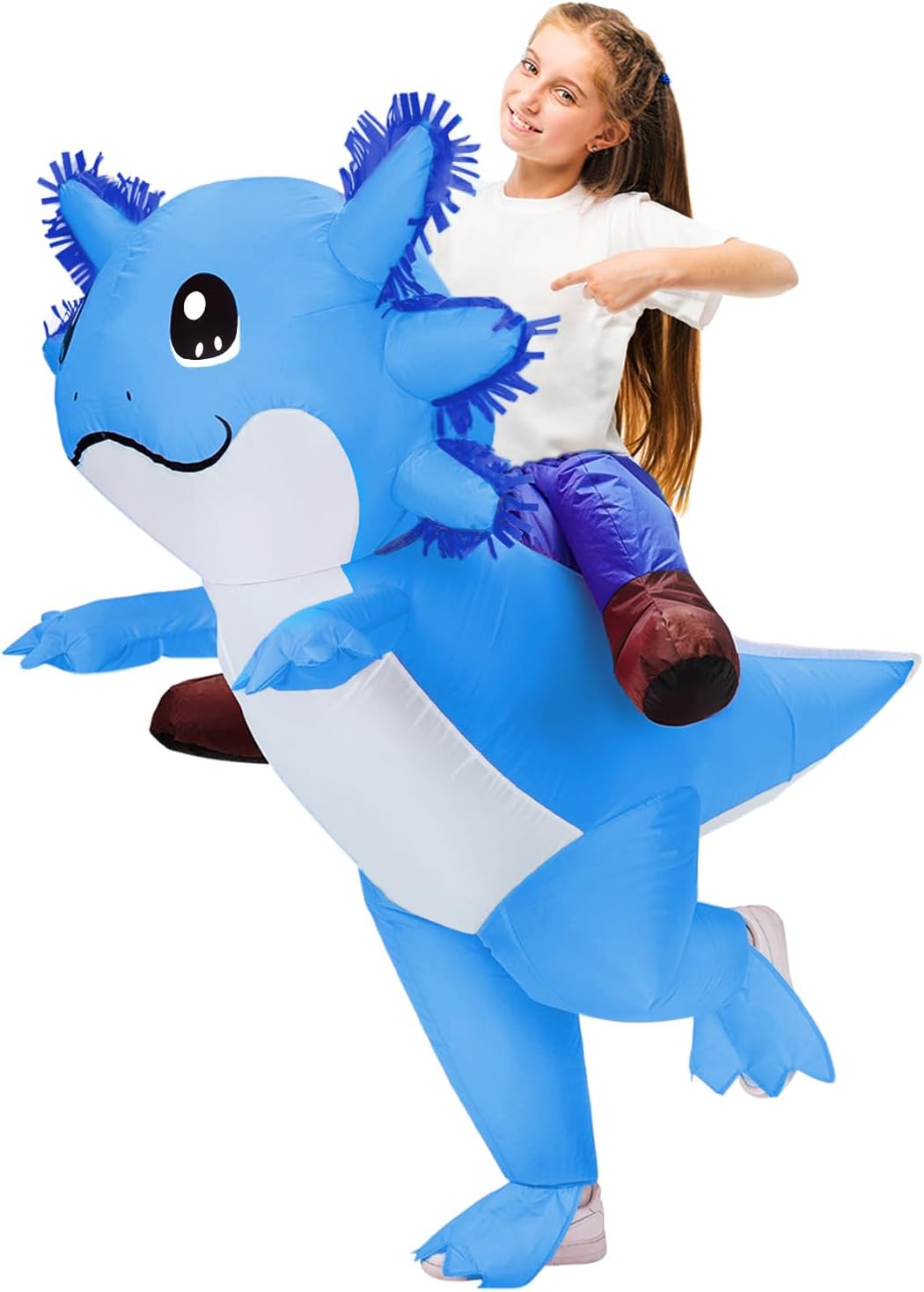 Stegosaurus Inflatable Axolotl Costume for Kids Halloween Costumes Kid Blow Up Costume Ride on Axolotl Costumes for Boys Girls Cosplay Party