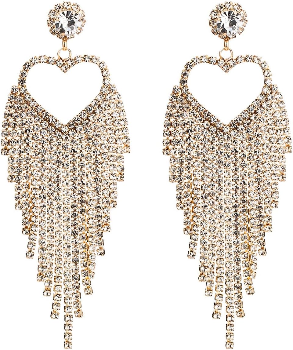 Heart Fringe Earrings, Heart Chandelier Dangle Earrings for Women, Bohemian Heart Tassel Earrings, Sparkling Heart Stud Earrings Heart Boho Jewelry, Love Heart Geometric Drop Earrings for womens