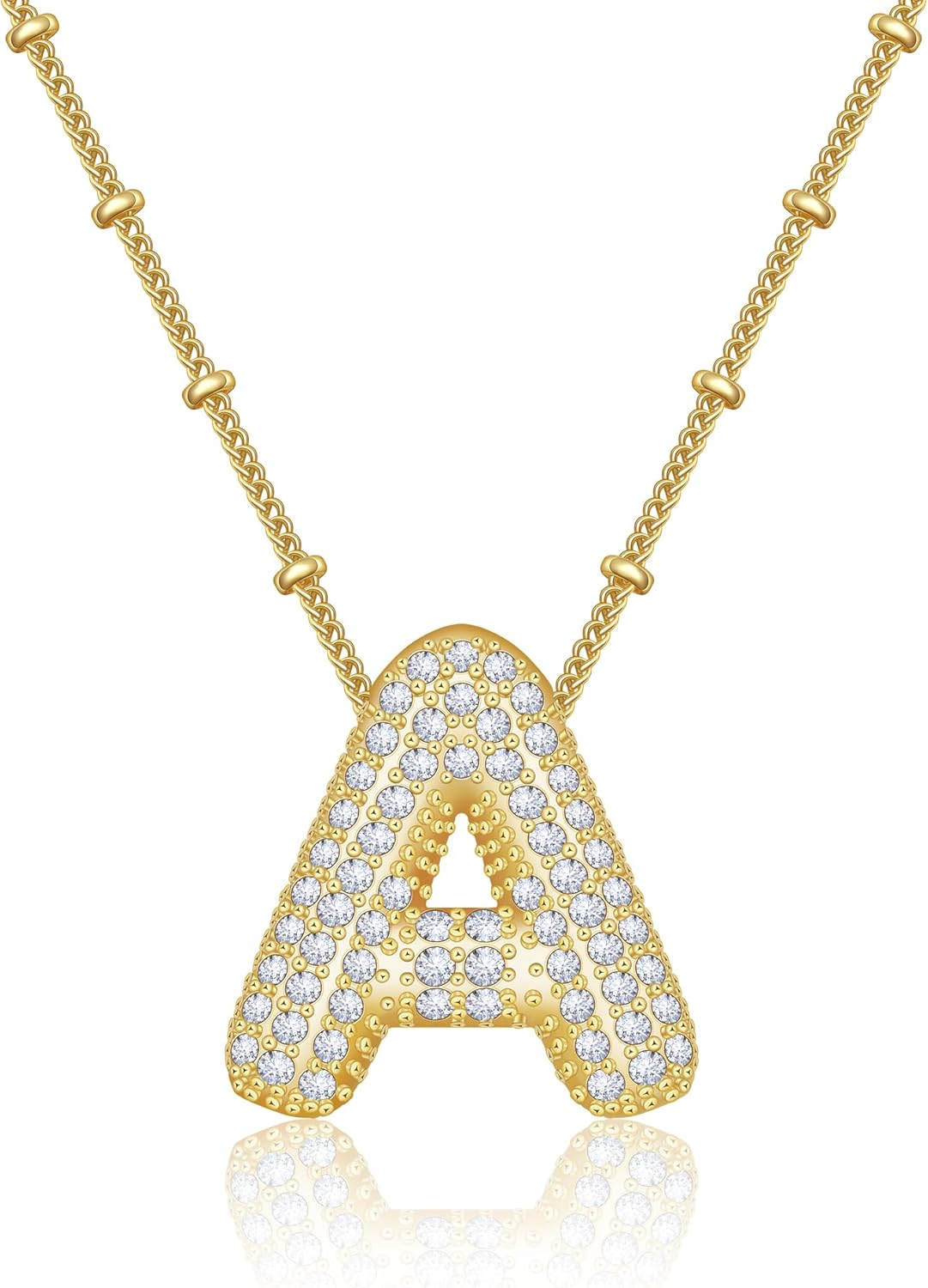 AILUOR Balloon Letter Necklace Gold for Women, Charm A-Z Balloon Initial Letter Pendant Zirconia Inlaid Necklaces Chunky Alphabet Name Pendant Necklace Personalized Gifts Jewelry