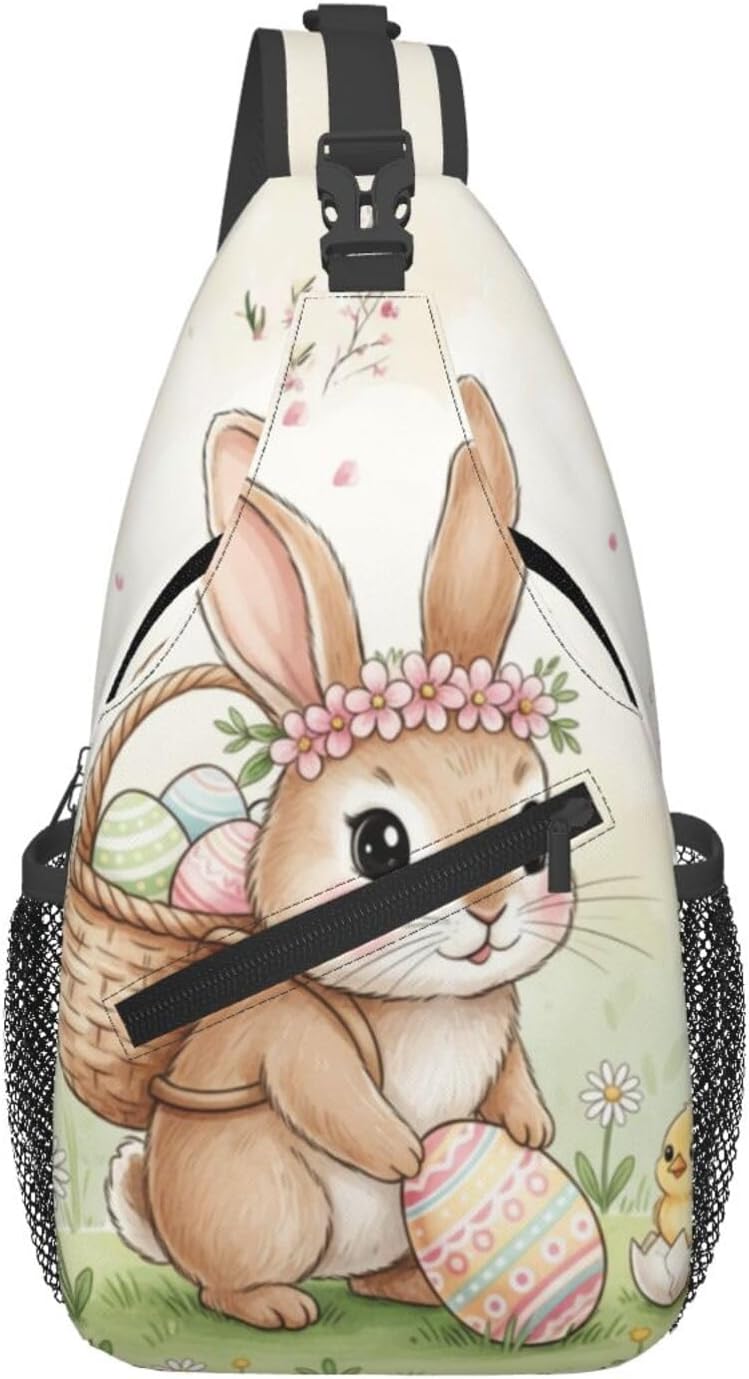 Easter Bunny Sling Bag For Women Men, Adjustable Easter Crossbody Shoulder Backpack Spring Holiday Chest Bag For Travel Hiking Casual Sport Daypack