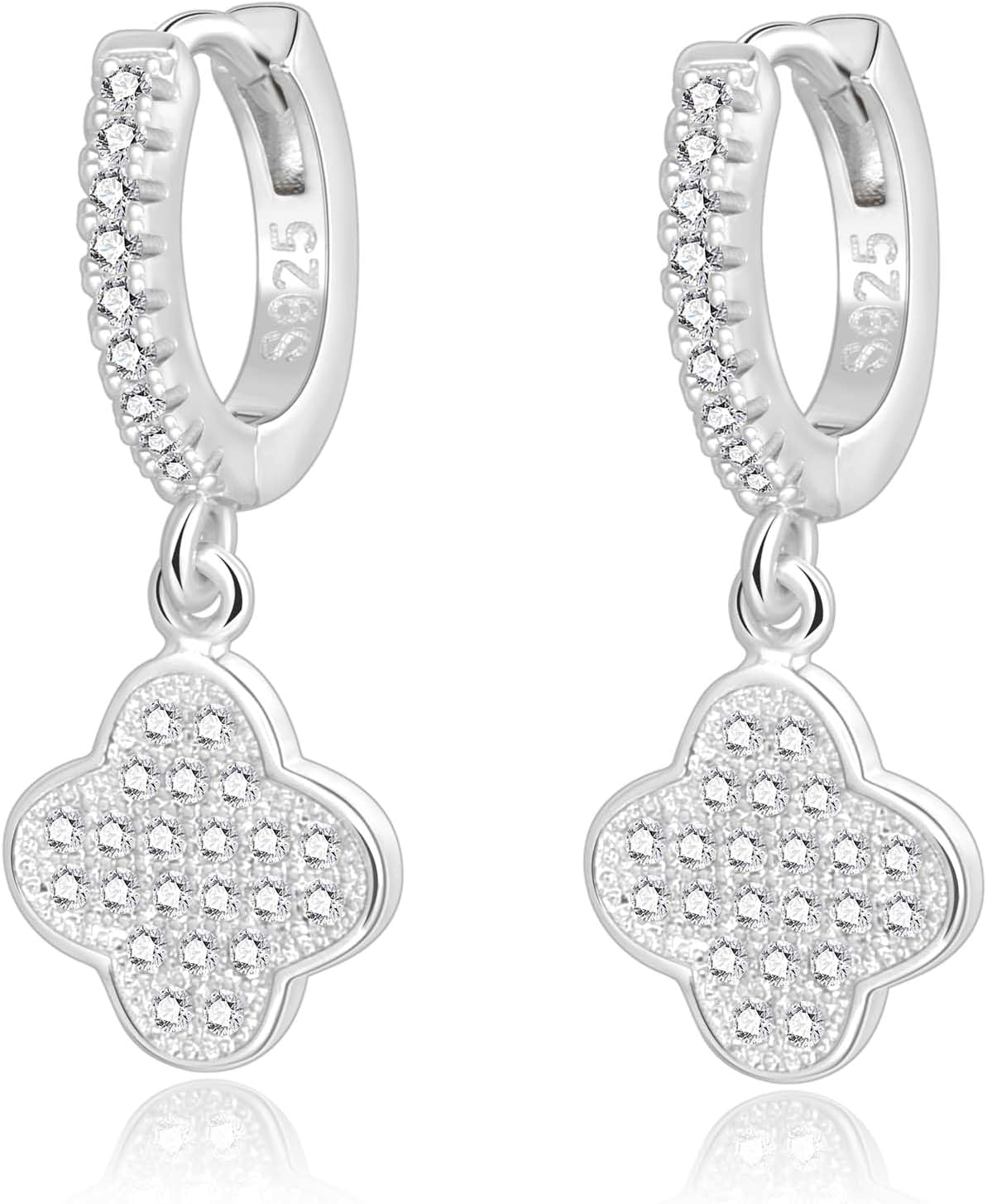 Hoop Earrings CZ Dangle Pendant Charm Heart Evil Eye Clover Star Huggie Hinged Hoop Earrings Silver Post Dainty Jewelry for Women