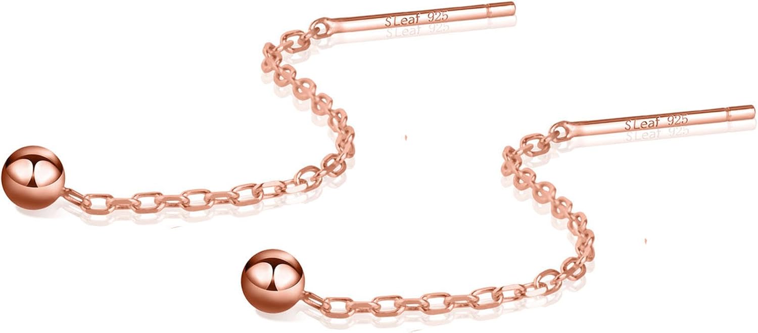 S.Leaf Threader Earrings for Women 925 Sterling Silver Gold Plated Hypoallergenic Backless Ardant Chain Duster Tassel Drop Double Piercing Pull Through Earrings for Women Trendy