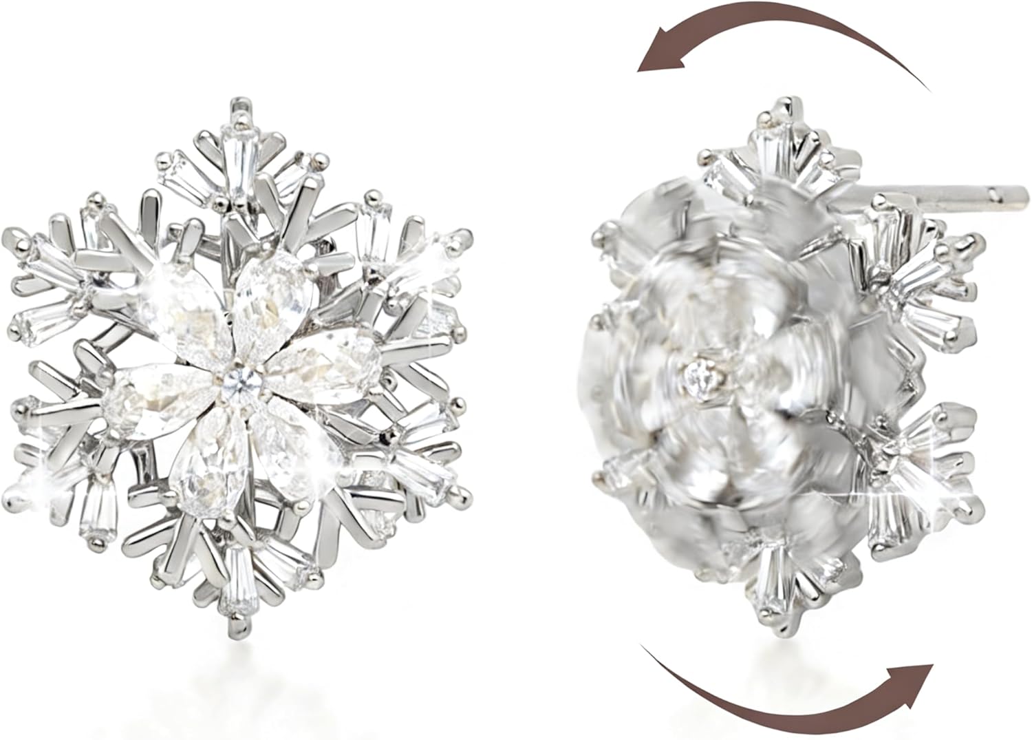 Gold Silver Snowflake Rhinestone Stud Earrings for Women, Sparkly Statement Flower Elegant Earring Hypoallergenic Wedding Winter Christmas Jewelry Gift
