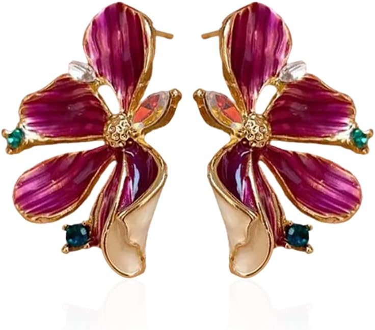 Dainty Cz Flower Stud Earrings for Women Gold Plated Chic Crystal Enamel Floral Statement Studs Hypoallergenic Wedding Party Trendy Jewelry