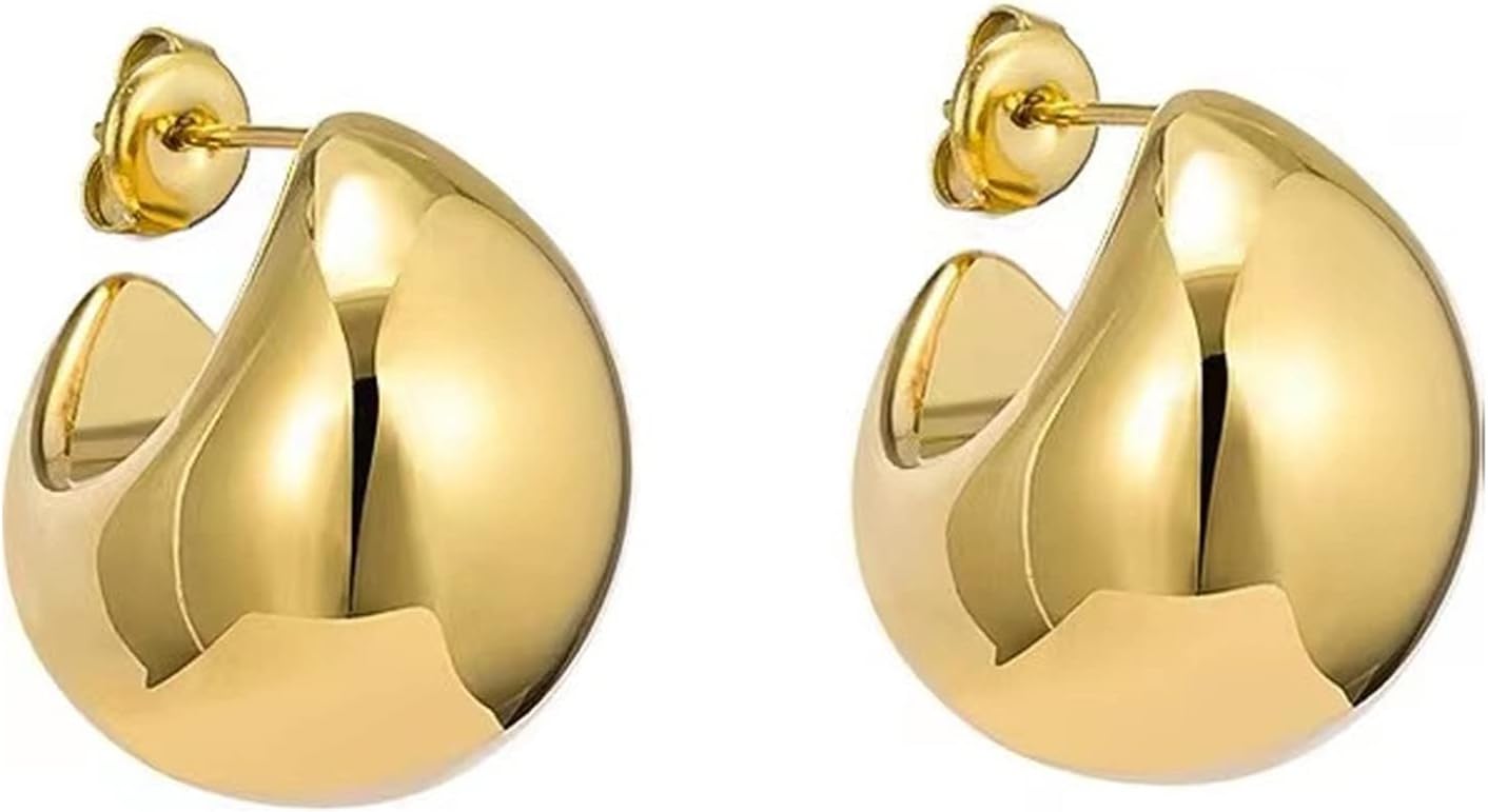 Chunky Gold Hoop Earrings for Women,Waterdrop Hoops Earrings Simple Delicate Lightweight Earrings Hypoallergenic Gold Plated Earrings Fashion Jewelry