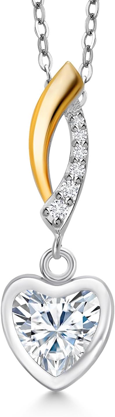 Gem Stone King 2 Tone 925 Silver and 10K Yellow Gold Personalized and Customized Heart Shape 6MM Gemstone Birthstone and White Lab Grown Diamond Pendant Necklace for Women with 18 Inch Chain