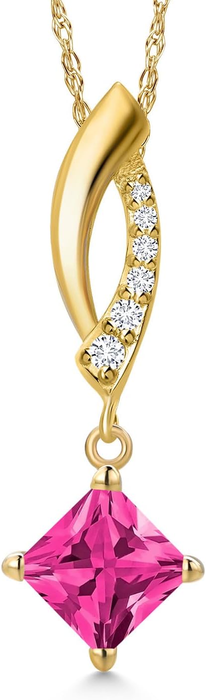 Gem Stone King 10K Yellow Gold Customized and Personalized Princess 5MM Gemstone Birthstone and Lab Grown Diamond Pendant Necklace for Women With 18 Inch Chain