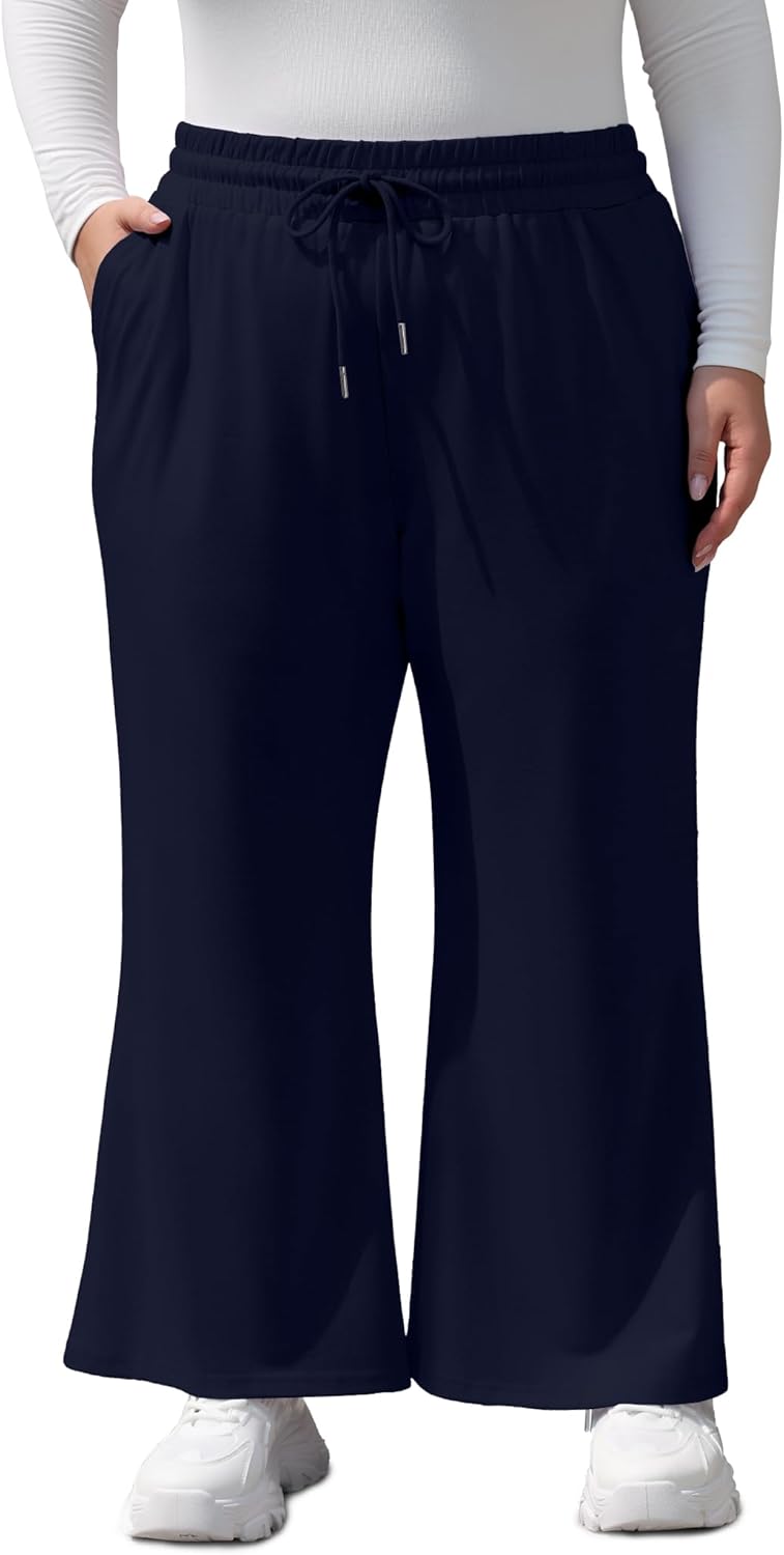 FOREYOND Plus Size Sweatpants Women Flared Knit Pants with Pockets Drawstring Pull-on Casual Yoga Pants 1XL-6XL