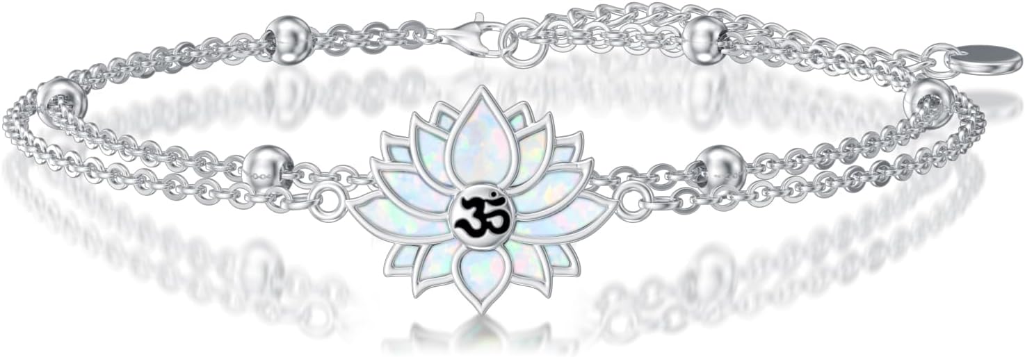 Lotus Bracelet for Women 925 Sterling Silver Lotus Layered Bracelet Yoga Jewelry Gifts