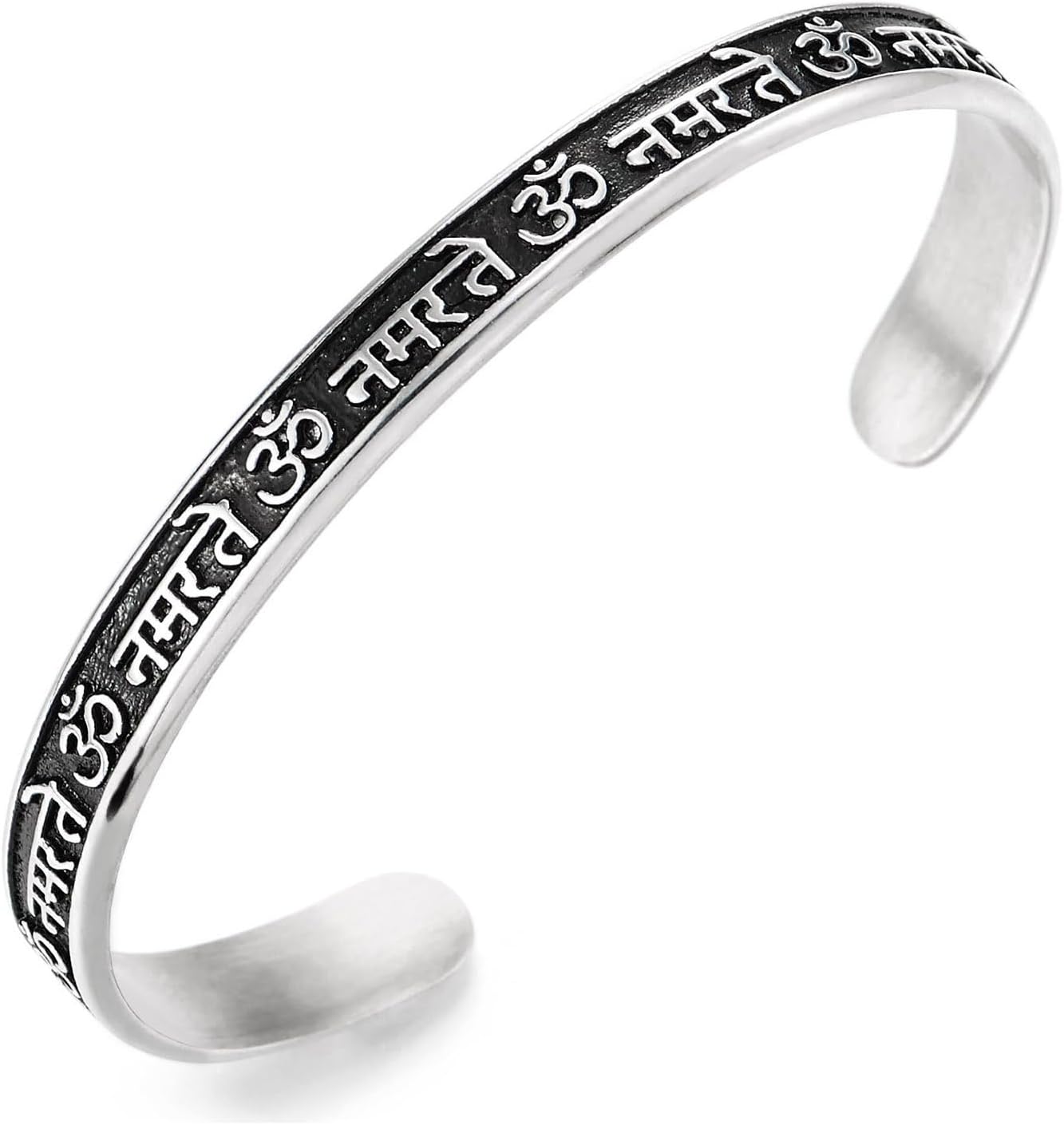 COOLSTEELANDBEYOND Om Namaste Cuff Bracelet, Mantras Amulet Cuff Bracelet Bangle, Stainless Steel, for Men and Women