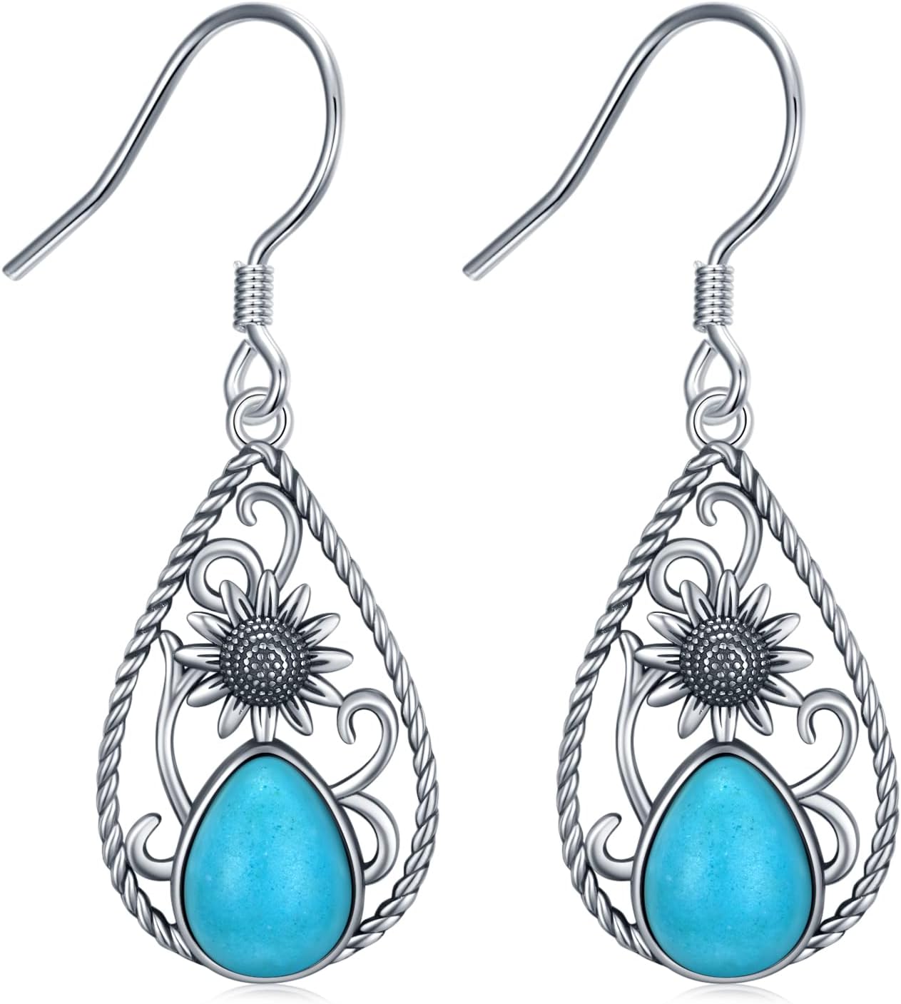 Boho Earrings for Women for Women Sterling Silver Sunflower Turquoise Earrings Boho Jewelry for Women Men
