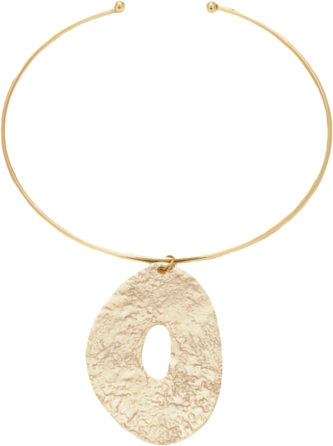 Gold Cleopatra Collar Necklace for Women – Chunky Statement Choker with Hammered Circle Pendant, Elegant African Style Jewelry Gift