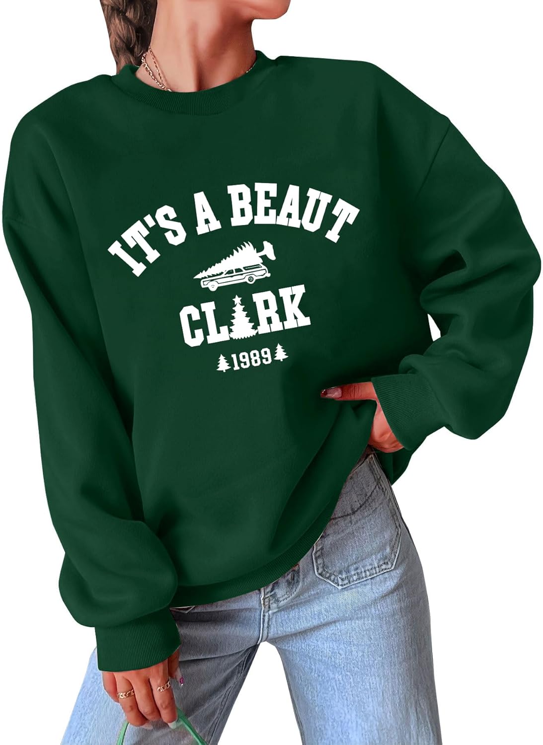 Christmas Sweatshirts for Women It's A Beaut Clark Sweatshirt Funny Christmas Tree Graphic Long Sleeve Shirts