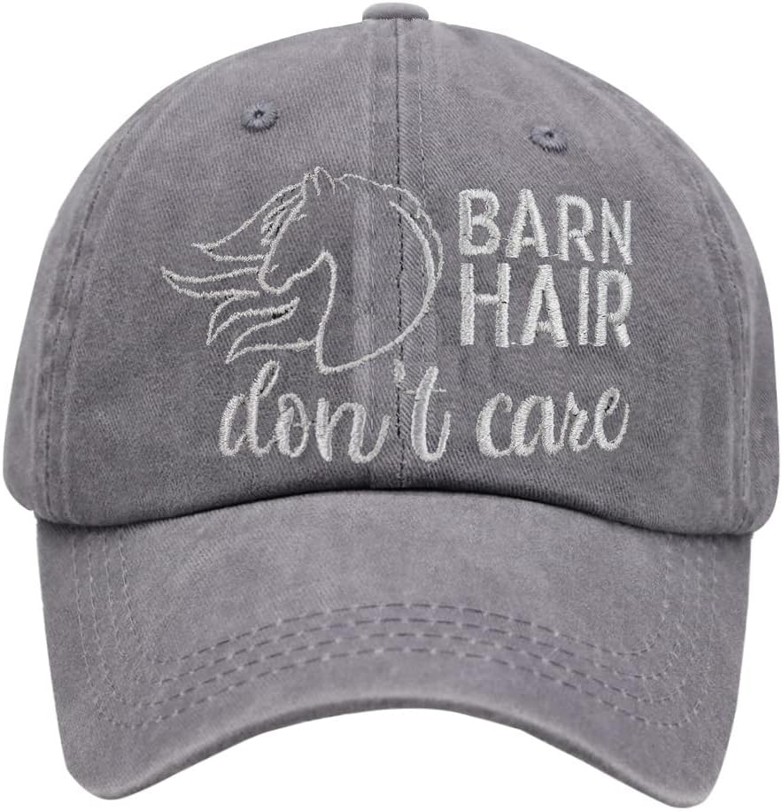 Barn Hair Don't Care Hat, Embroidered Adjustable Wash Cotton Baseball Cap, Horse Lovers Gifts for Women Men