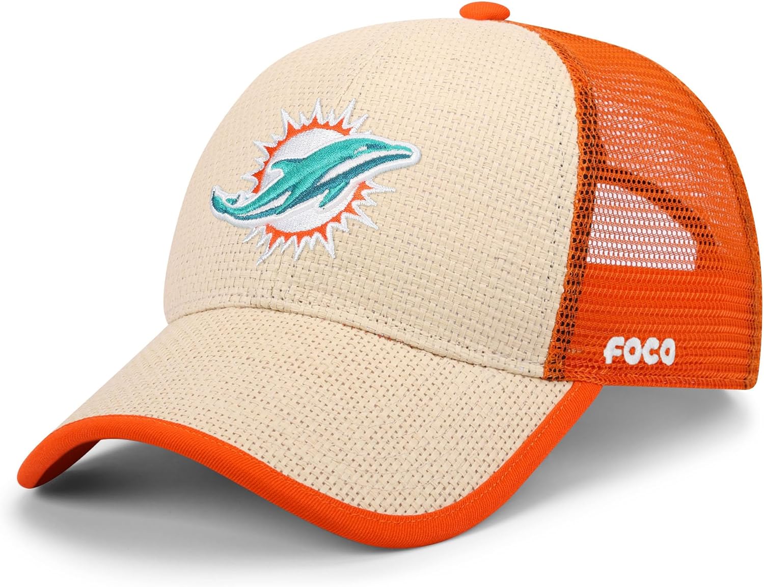 FOCO NFL Mens NFL Team Logo Straw Casual Trucker Cap Hat