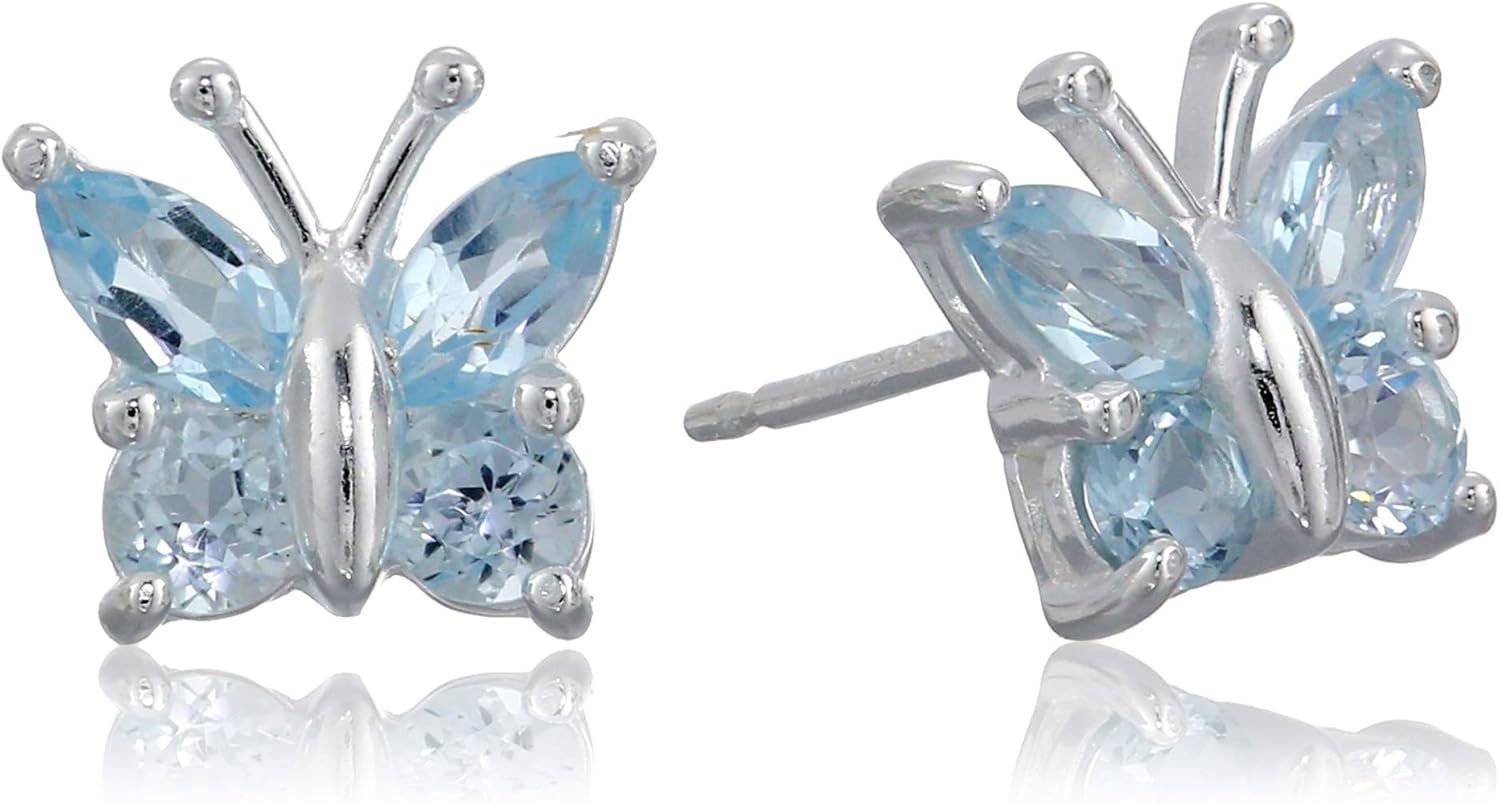 Amazon Collection Genuine or Created Gemstone Butterfly Stud Earrings in Sterling Silver