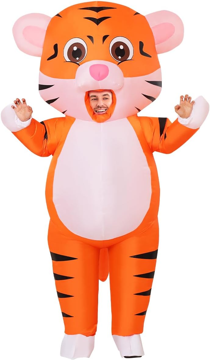 GOOSH Inflatable Tiger Costume for Adluts Blow up Halloween Costumes Men Women 72IN Funny Blow up Cow Costume for Halloween Party Cosplay