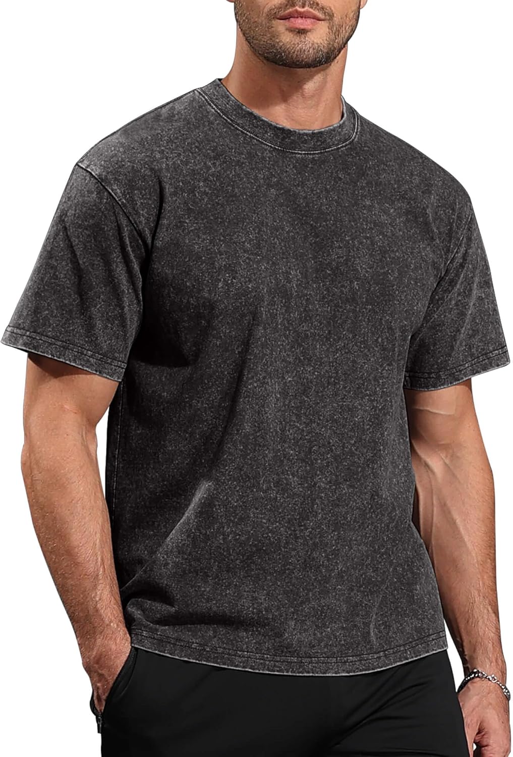 Mens Acid Wash T-Shirt Oversized Unisex Cotton Vintage Tees Short Sleeves Casual Shirt for Men