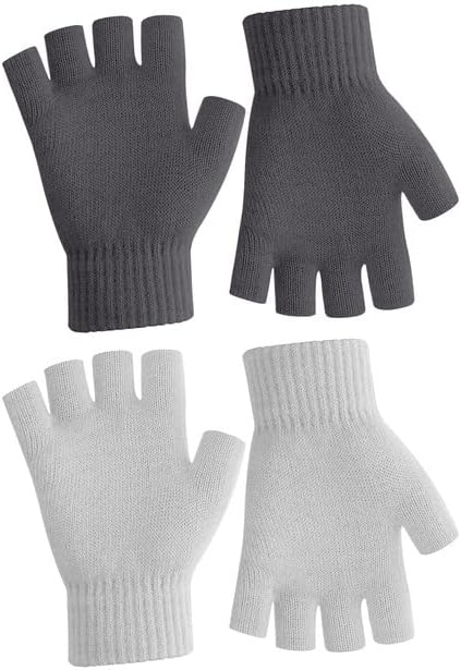 NZKNP Fingerless Gloves for Women & Men - Warm Knitted Mittens for Typing & Half Finger Gloves