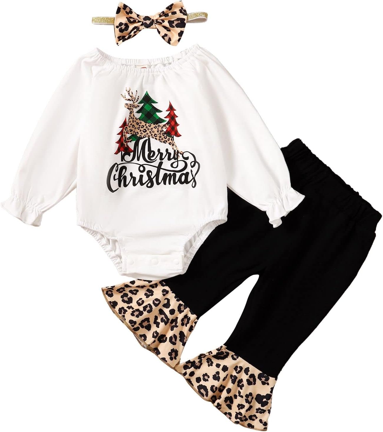 Newborn Girl Christmas Outfit Baby Xmas Clothes Merry Christmas Flare Pant Outfit