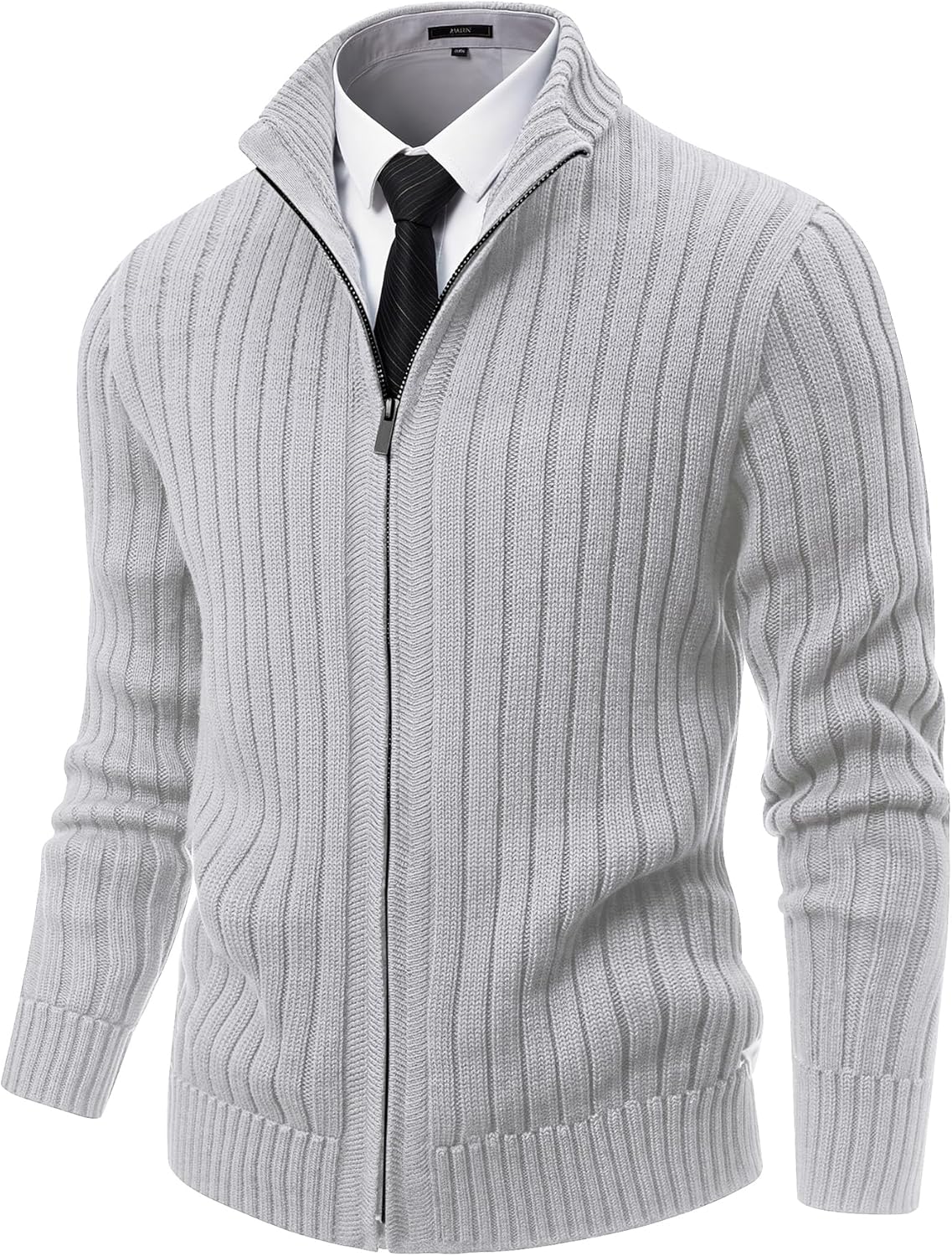 NITAGUT Men's Cardigan Sweater Stand Collar Full Zip Up Sweater Slim Fit Casual Knit for Winter