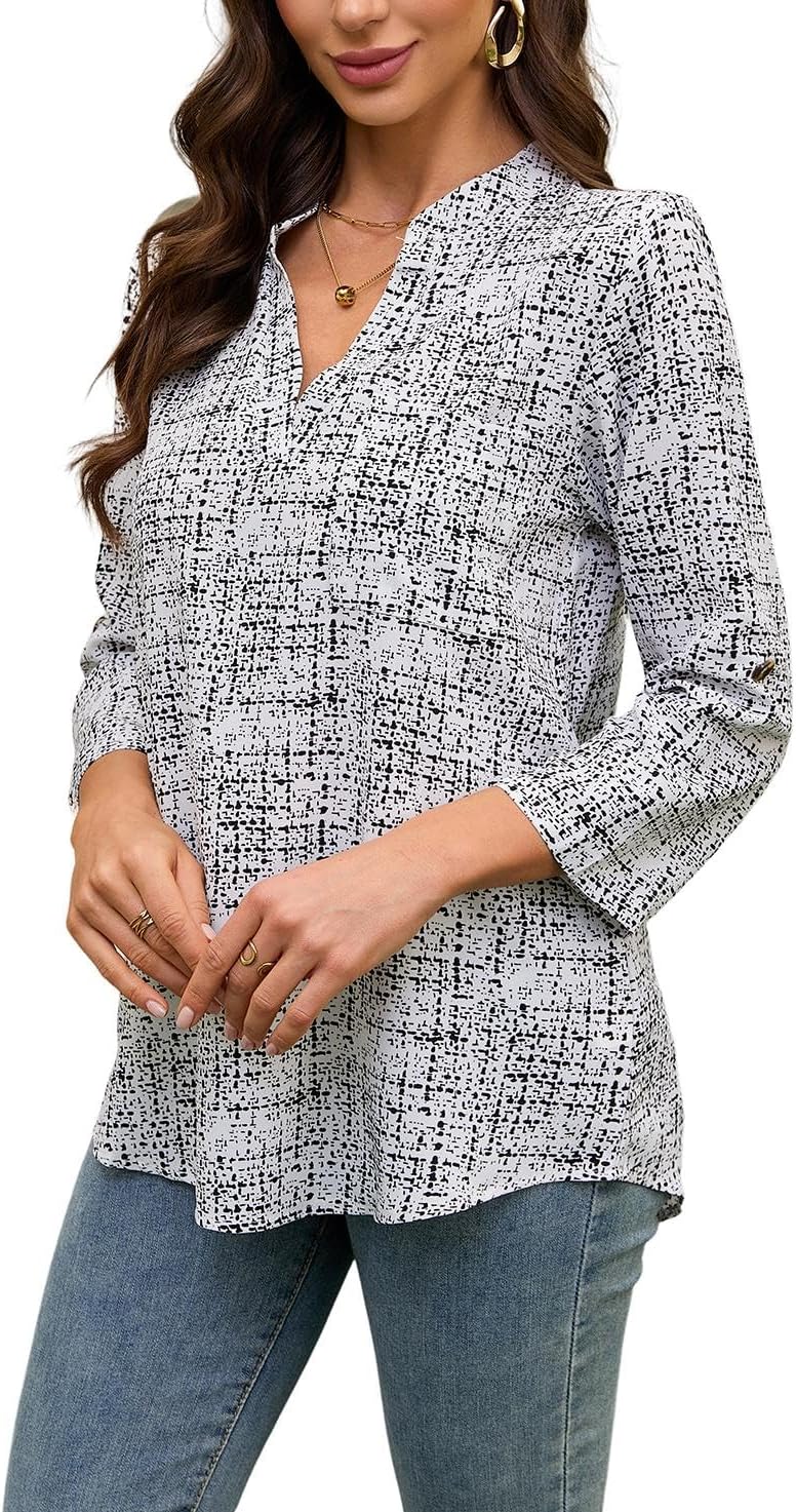 Women's Casual V-Neck Shirt Long Sleeve Button Work Tops Business Casual Summer Floral Tops