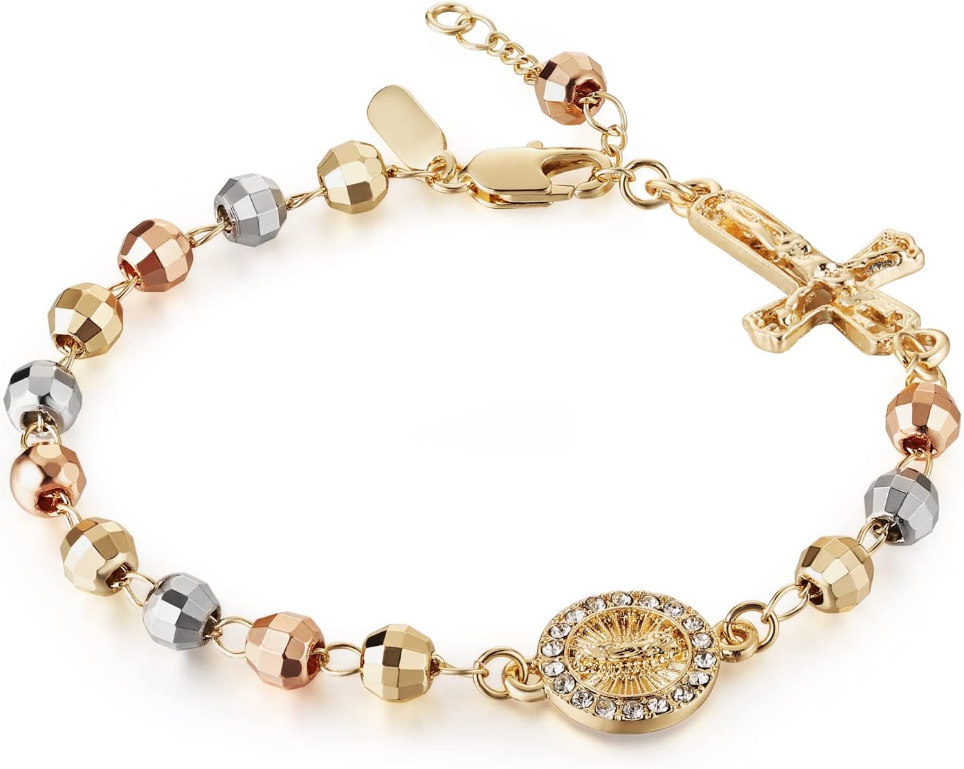 HZMAN Virgin Mary Rosary Bead Cross Bracelet Virgin of Guadalupe Adjustable Link Bracelet for Women Jewelry Gift