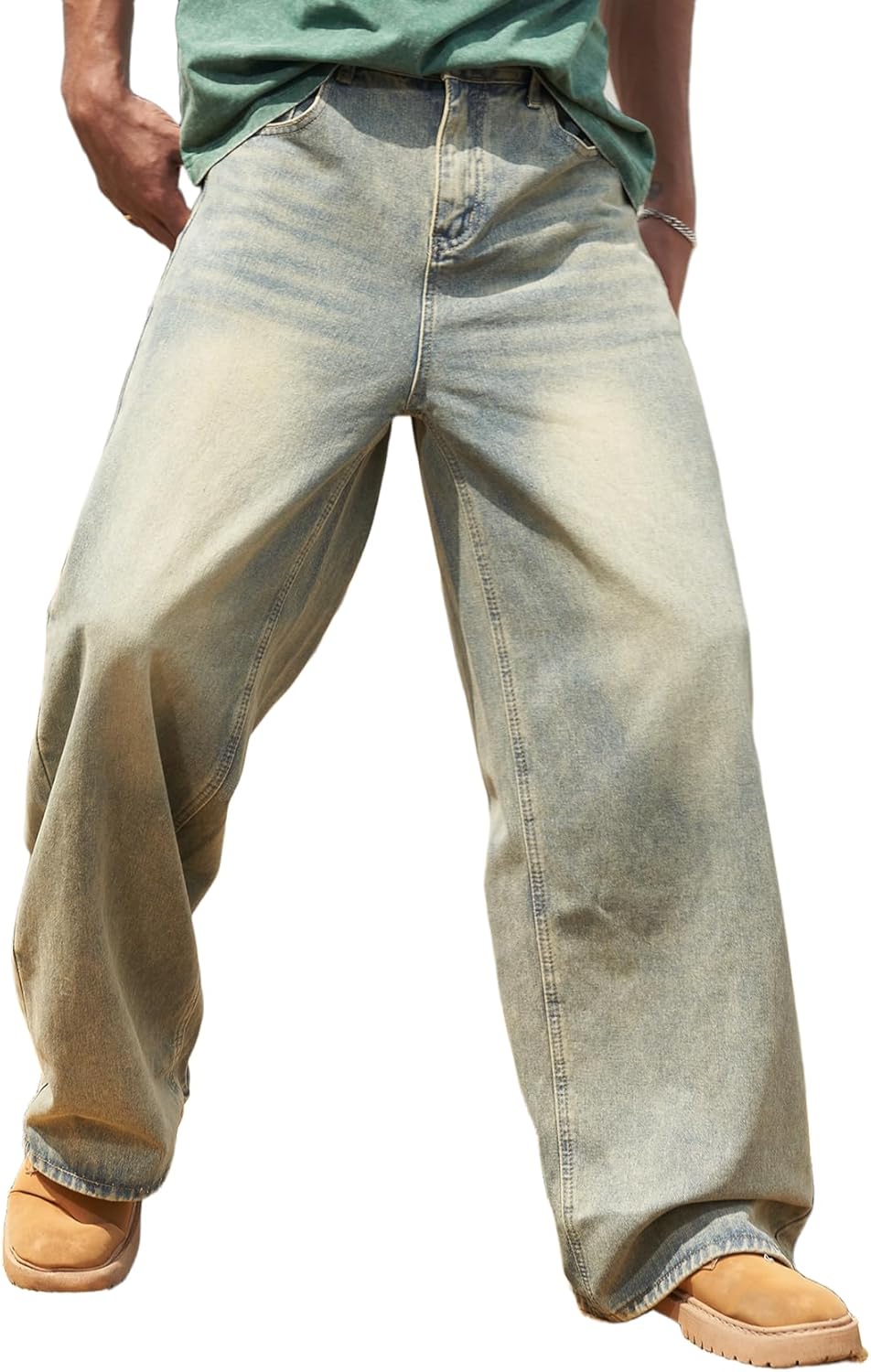 Men's Baggy Straight-Leg Hip Hop Jeans Casual Wide Leg Y2k Skateboard Vintage Denim Pants Streetwear