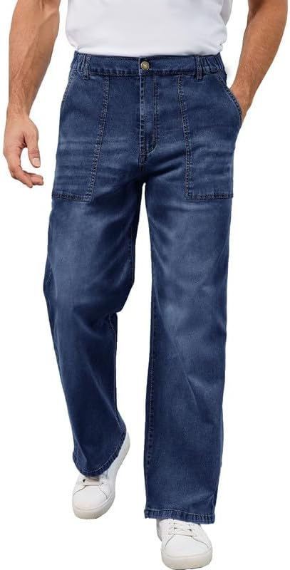 Men's Elastic Waist Baggy Jeans Stretch Denim Wide Leg Trousers Loose Fit Casual Pants