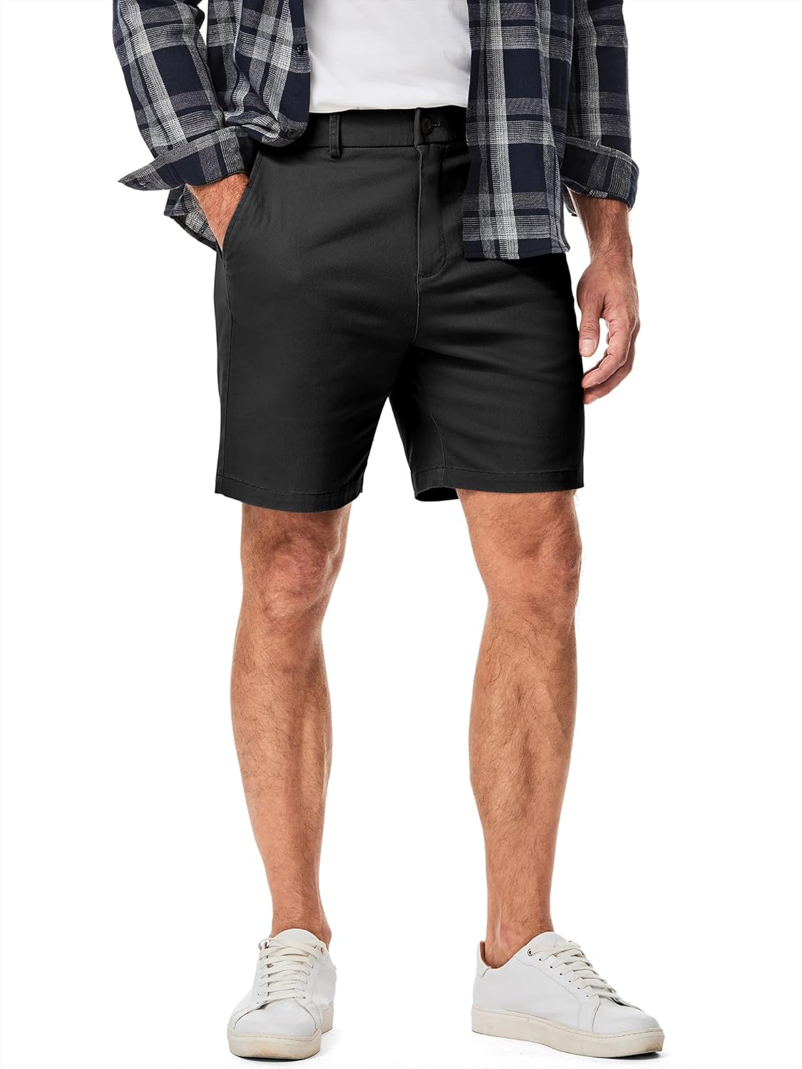 JMIERR Men's Classic-Fit 7" Chino Short Summer Stretch Waist Cotton Twill Casual Dress Shorts with Pockets