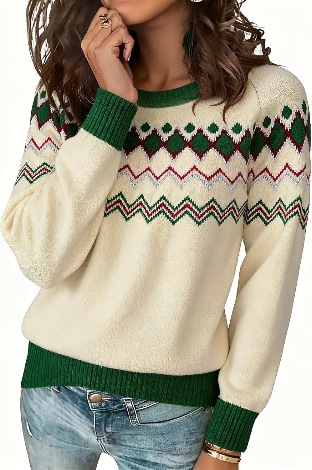 ANCAPELION Women's Christmas Sweater Pullover Vintage Color Block Chunky Knit Sweater Tops