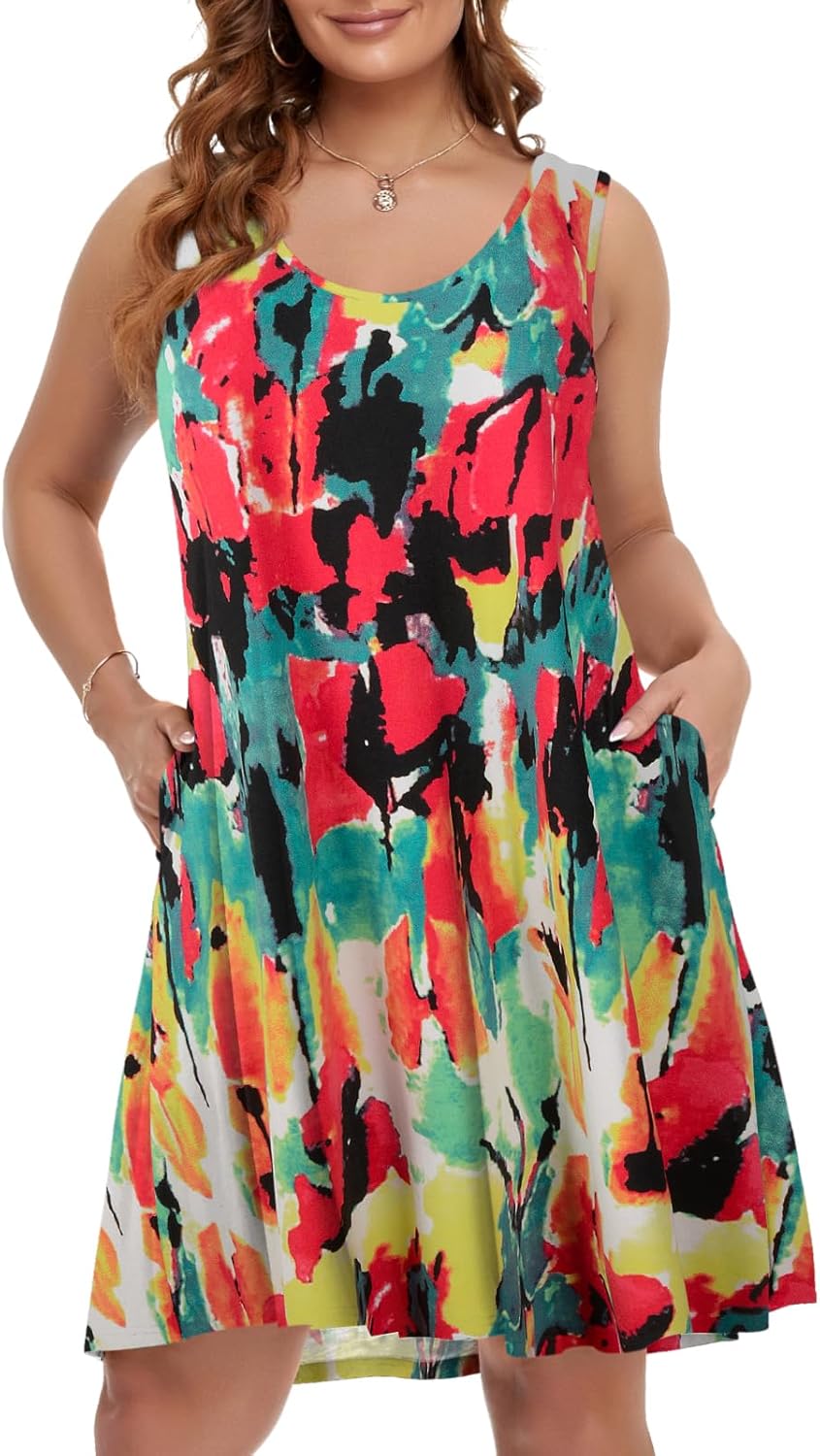 BELAROI Women Plus Size Sundress Summer Casual Sleeveless Tshirt Dress Tie Dye Swing Tank Dresses with Pockets Beach Cover up