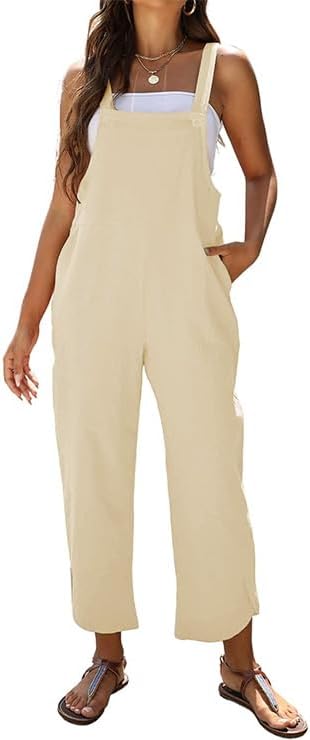 AMEBELLE Women's Sleeveless Cotton Linen Overalls Rompers Baggy Wide Leg Jumpsuits