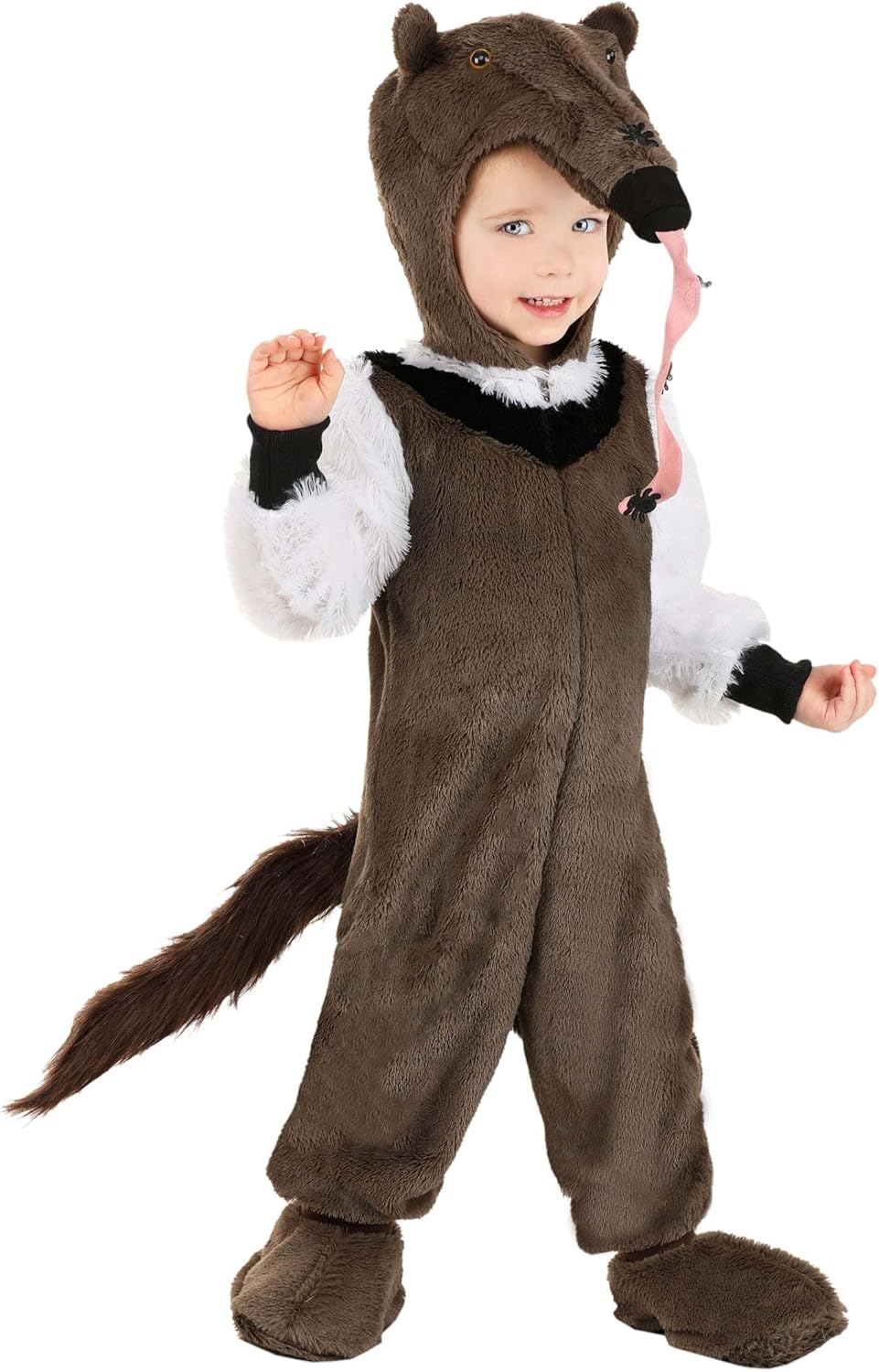 Plush Toddler Anteater Halloween Costume - Cozy Play & Dress-Up Outfit for Kids, Hooded Jumpsuit with Shoe Covers and Tail
