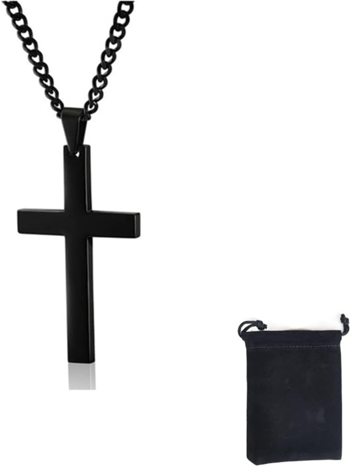 Jilukibo Black Stainless Steel Christian Religious Cross Pendant Necklace with 24 Inch Chain, Faithful Jewelry Simple Cross Necklace for Men
