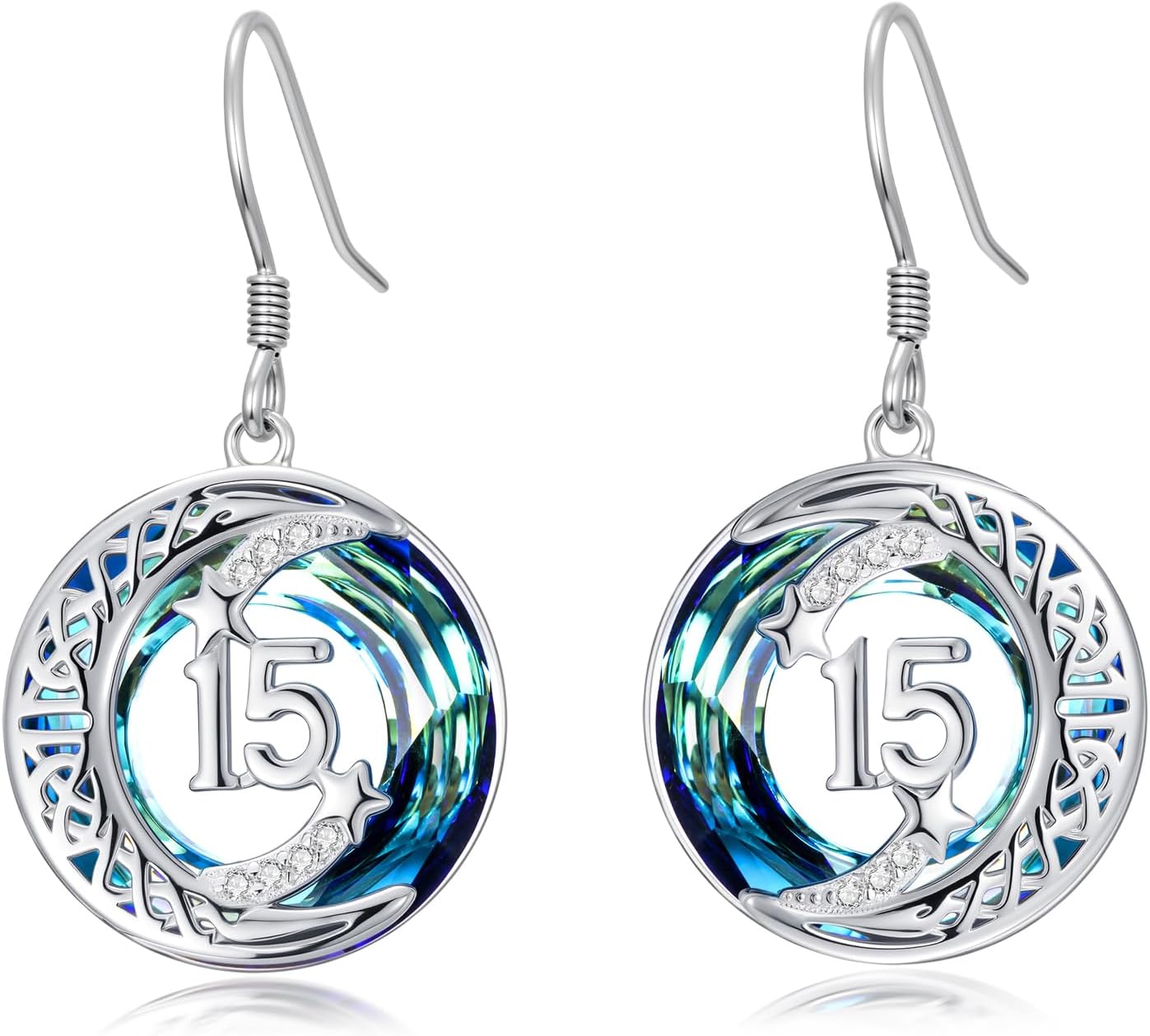 JUSTKIDSTOY Birthday Gifts Earrings for Daughter 925 Sterling Silver Birthday Gift Earrings Celtic Moon Star Leverback Dangle Drop Earrings Blue Crystal Jewelry for Women Sister