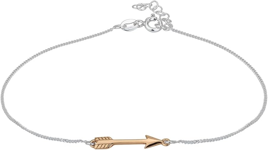 Vanbelle Sterling Silver Jewelry - Rose Gold Plated with 925 Stamp - Arrow Charm with Two Tone Anklet - Elegant handcrafted Chain Anklet for Women - 9" long + 1" extender