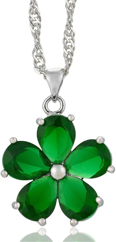 RIZILIA BLOSSOM Pear Cut Birthstone Necklace for Women - Multi Color Options - 18K White Gold Plated CZ Pendant, 18"+2" Chain - Gift Boxed for Her, Mother Birthday