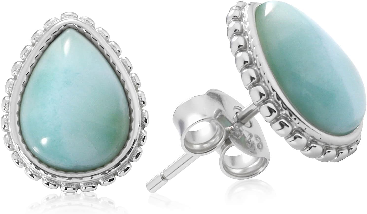 Gemsme Larimar Earrings for Women - Hypoallergenic 925 Sterling Silver Blue Larimar Jewelry Stud Earrings