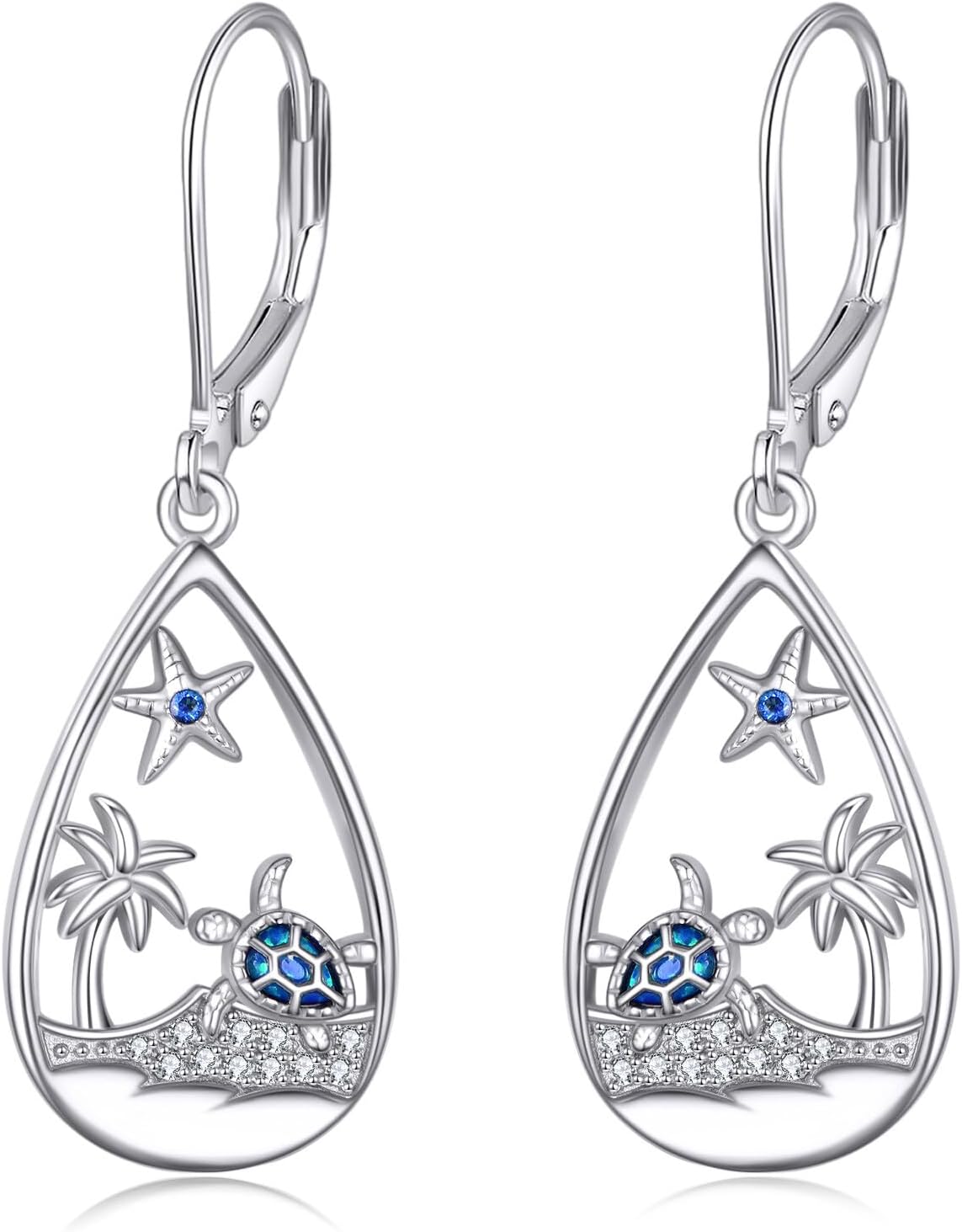 Anchor/Sea Turtles/Frog/Cowboy Earrings Sterling Silver Nautical Drop Earrings Steering Ocean Sea Nautical Theme Jewelry Gifts for Women