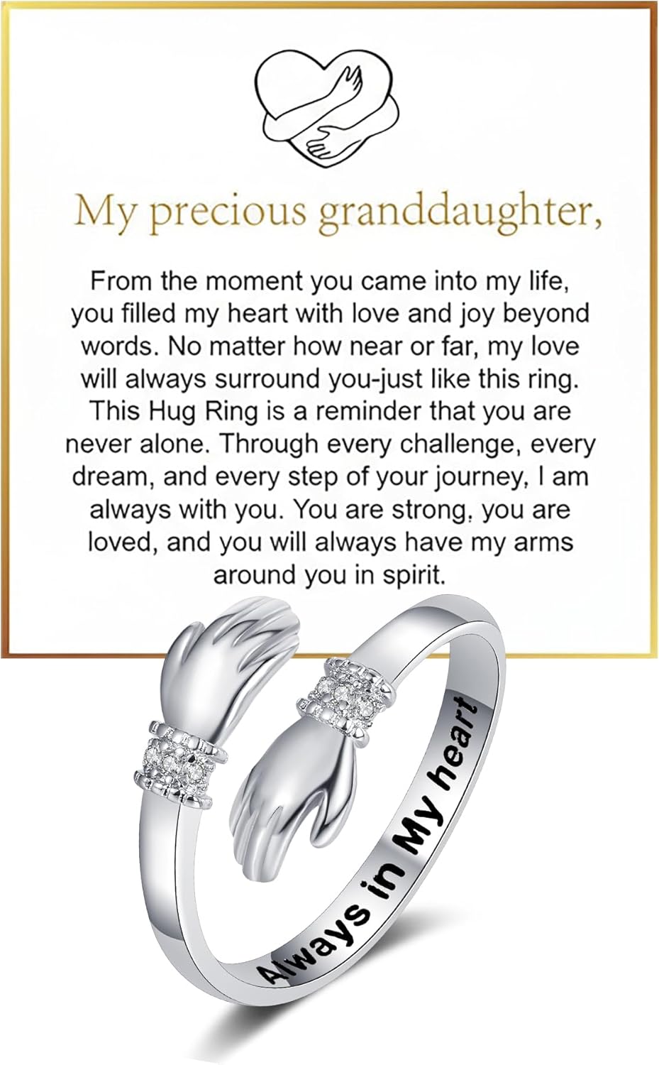 To My Granddaughter Hug Ring Hope Rings from Grandma, Adjustable Inspirational Stainless Steel for Granddaughter Non Tarnish Jewelry Gift for Birthday Christmas Engarved Always With You Message