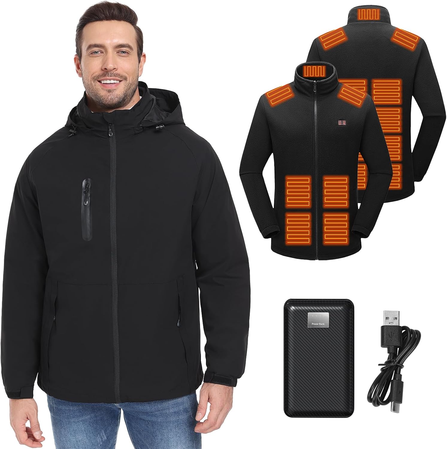 Men's 3-in-1 Heated Jacket with Battery, Waterproof Windproof Detachable Soft Shell Heating Coat for Winter, XL