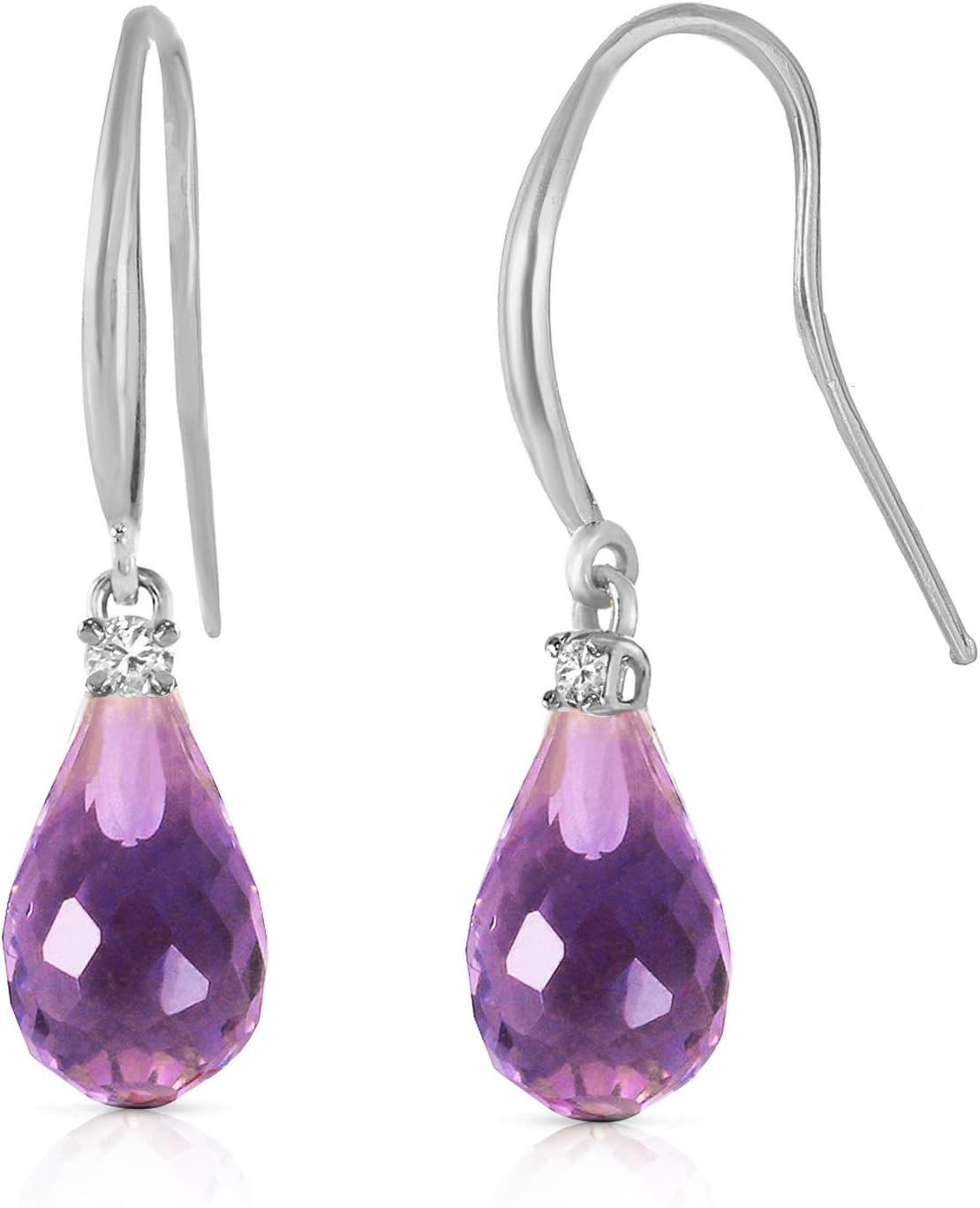 Galaxy Gold GG 14k White Gold Diamond Fish Hook Earrings with Amethysts