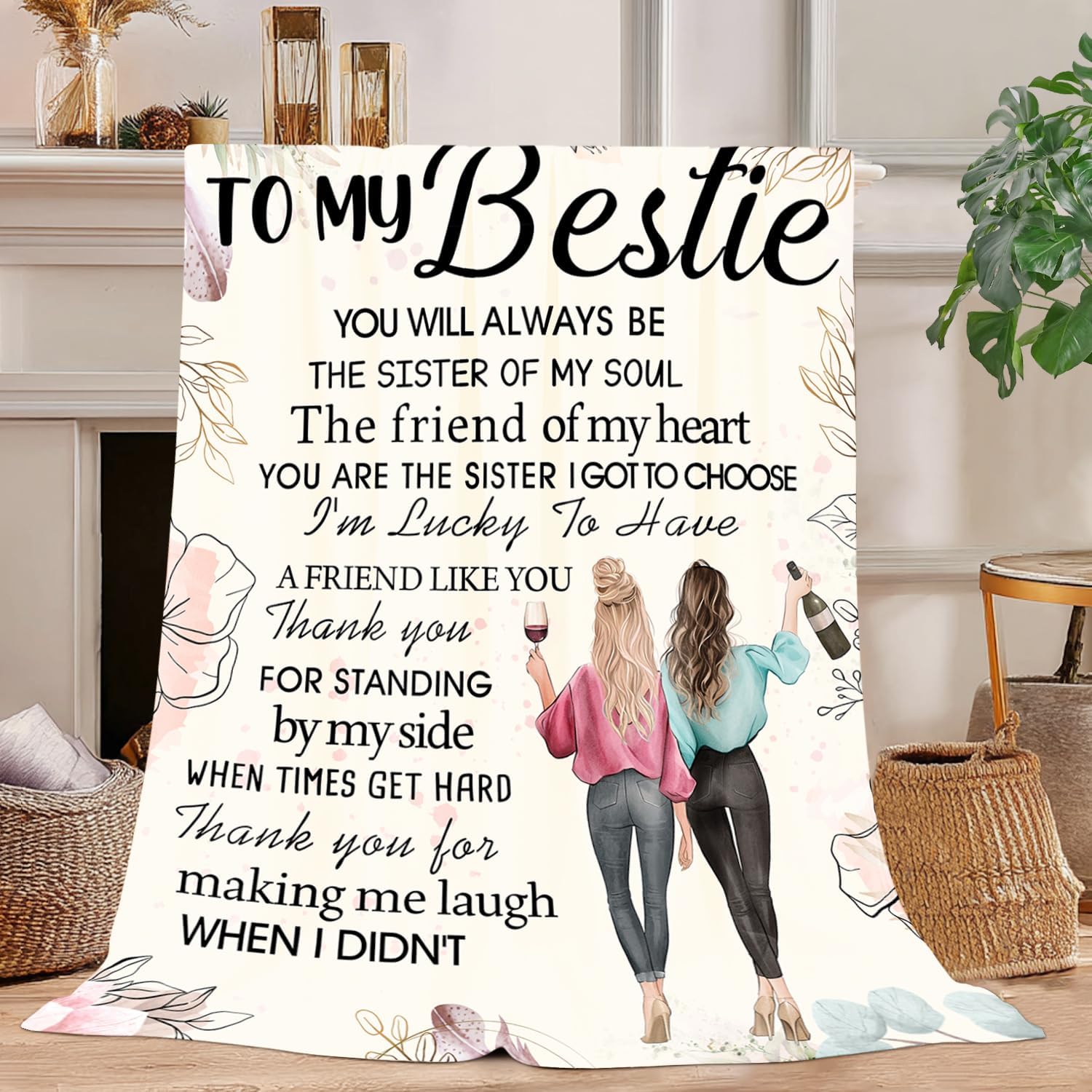 Bestie Gifts for Women - Best Friend Blanket Gift 60 x 50 Inch | Long Distance Friendship Gift Thinking of You Gifts | Perfect for Mother's Day, Birthday & Far Away Besties