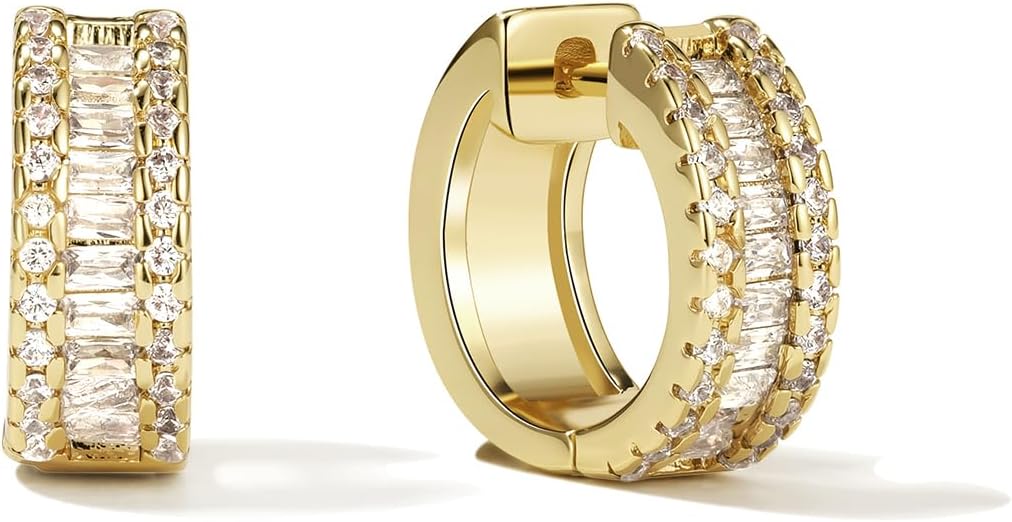 14K Gold Small Huggie Earrings for Girls,925 Sterling Silver Gold Hoops Earrings Trendy Chunky CZ Pin Earrings Jewelry Gifts for Girls