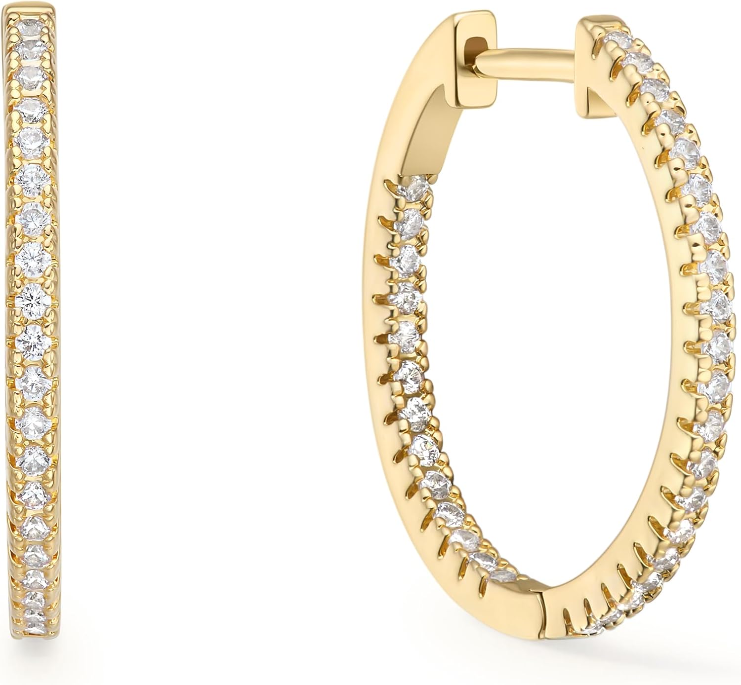 14K Gold Small Huggie Earrings for Girls,925 Sterling Silver Gold Hoops Earrings Trendy Chunky CZ Pin Earrings Jewelry Gifts for Girls